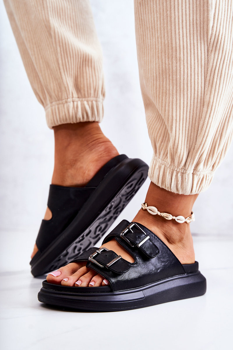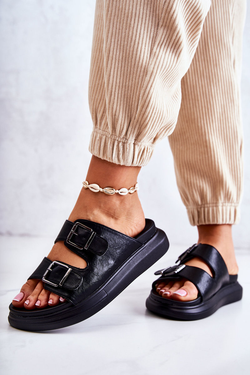 Жіночі шкіряні тапочки з пряжкою La.Fi Black Nariss