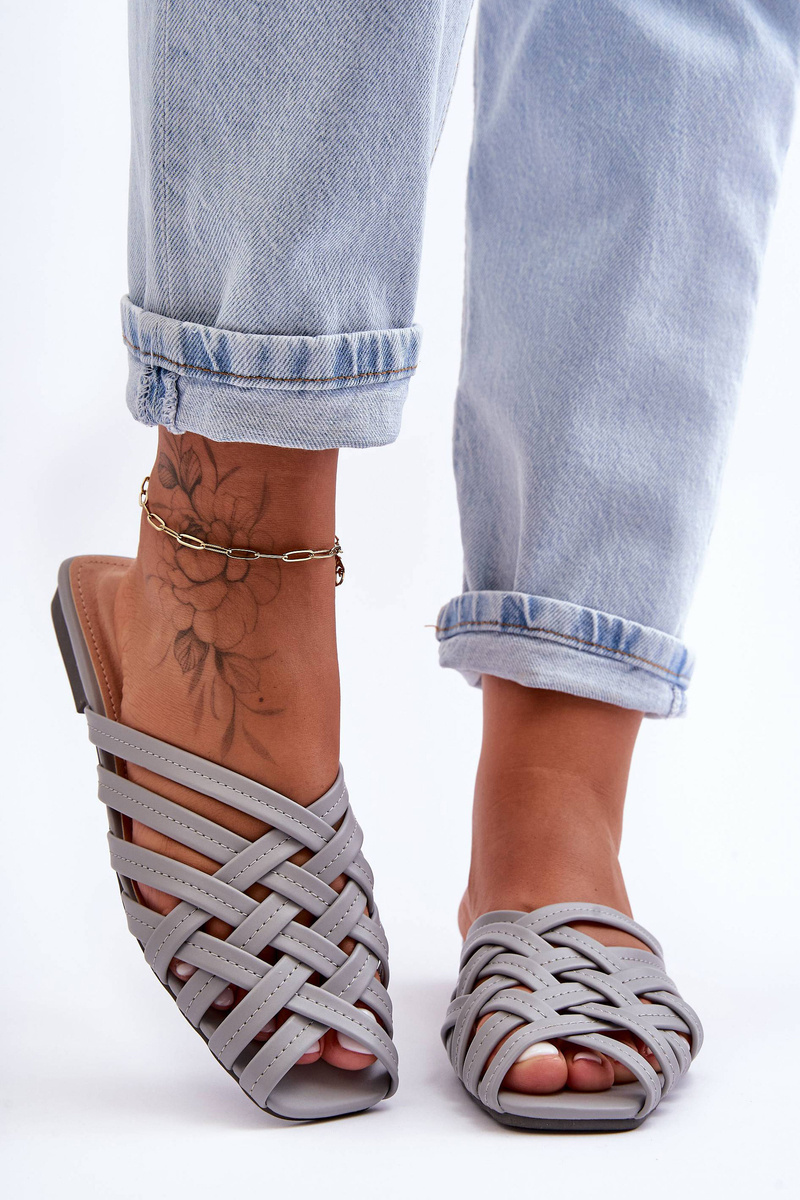 Жіночі шкіряні тапочки на лямках сірі Doralia
