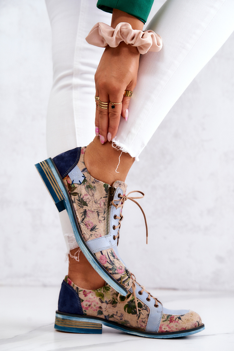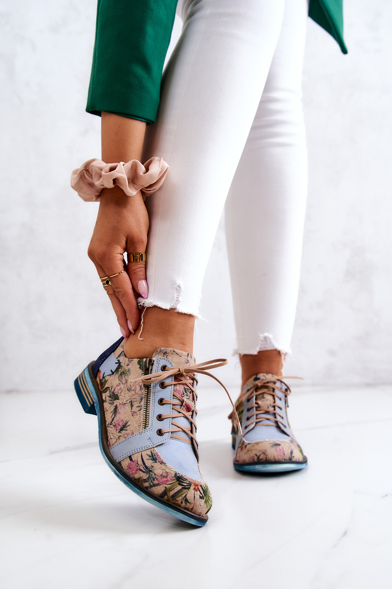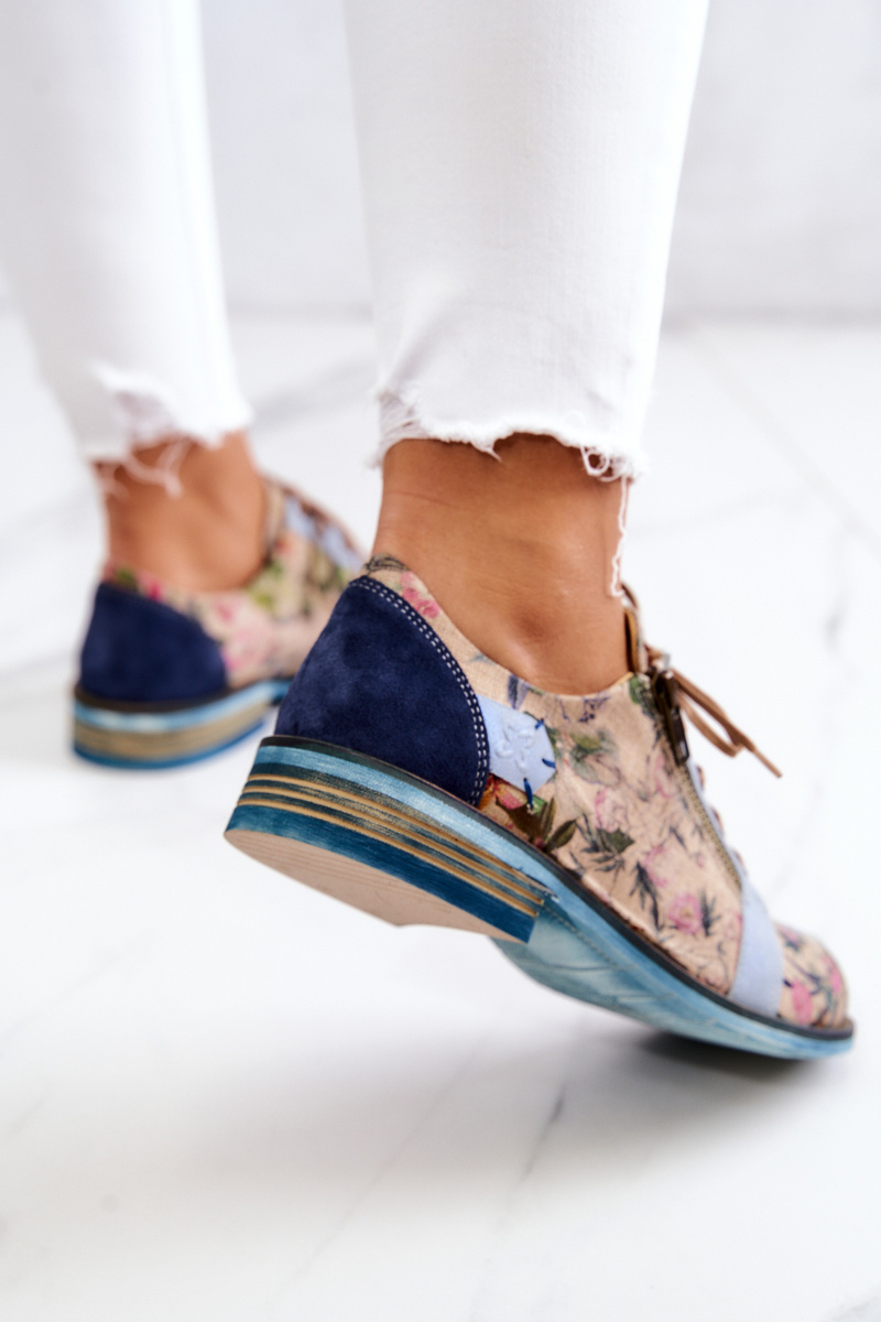 Жіночі шкіряні туфлі з квітами Maciejka 5096A-34 Сині