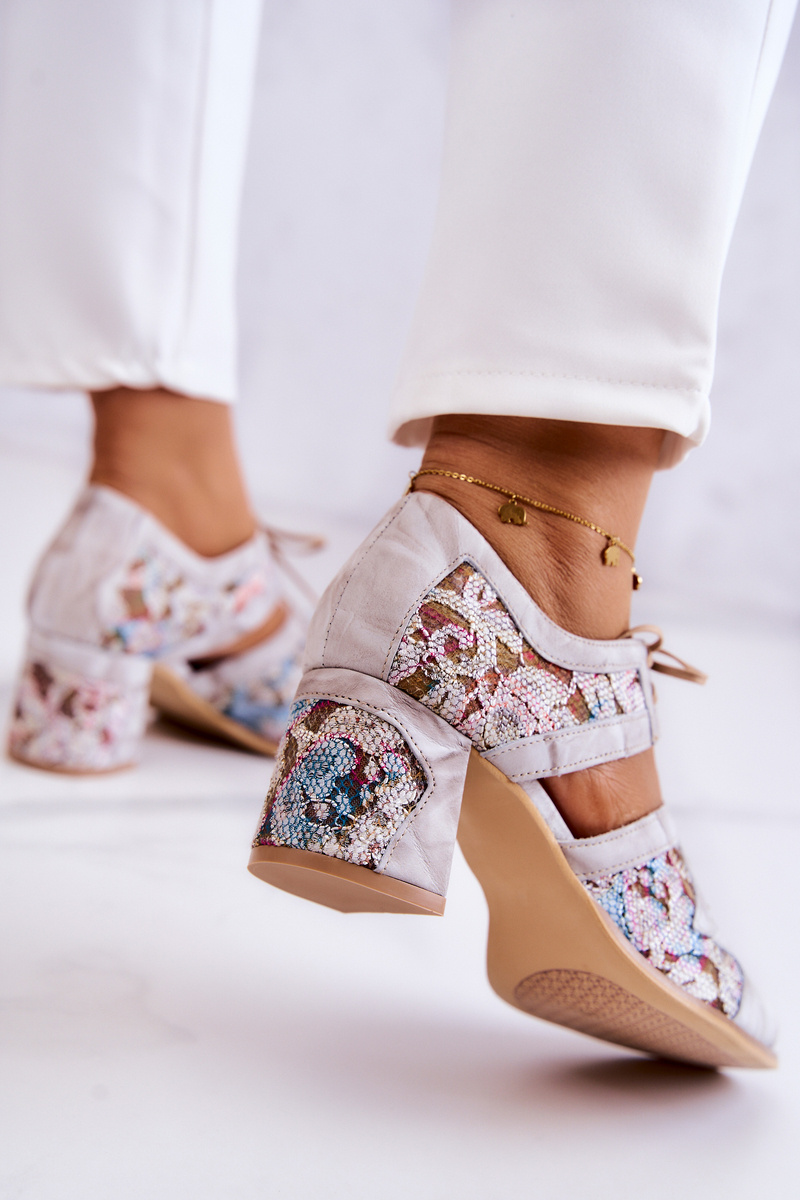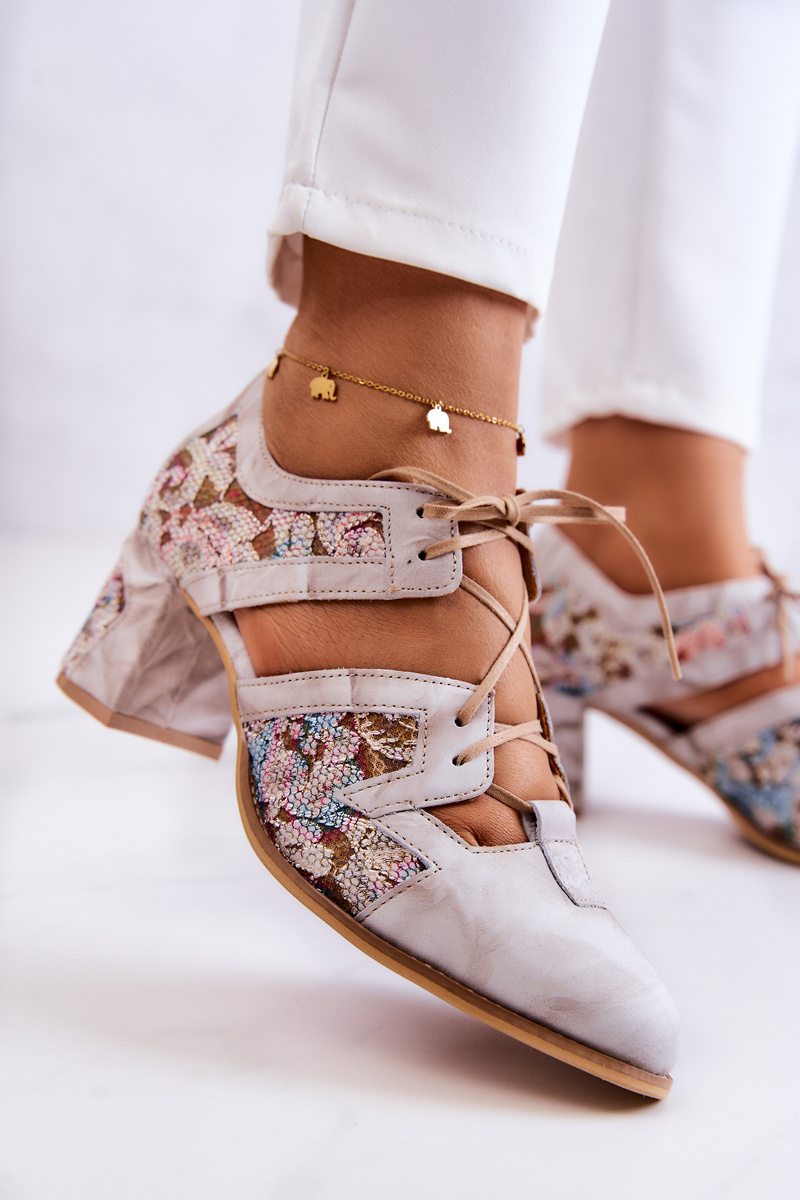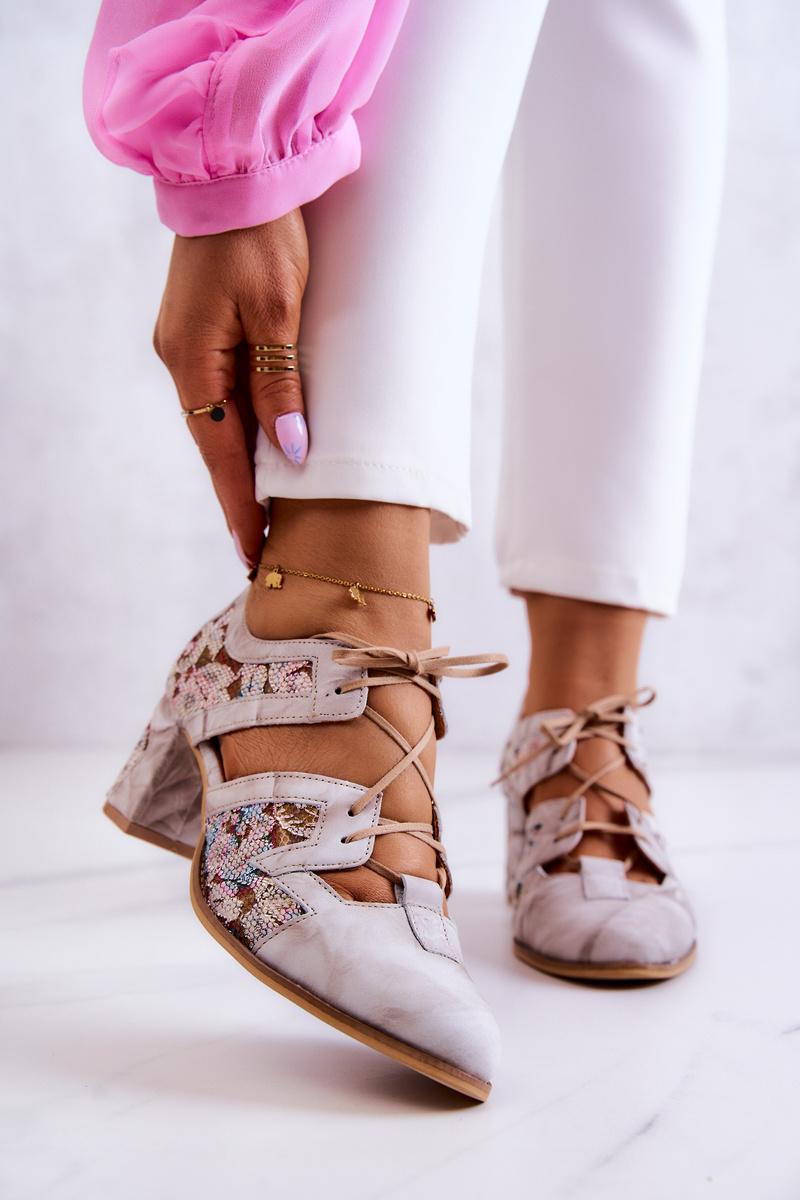 Надзвичайно стильне взуття від Maciejka вже в наявності! Вони привертають увагу своїм незвичайним дизайном. Виготовлений з натуральної шкіри та тканини. Верхня щиколотка. Чудова модель, ідеальна для весняно-літніх стилізацій! Черевики зав'язуються плоскими тонкими шнурками. Мигдалеподібний ніс. Стійкий каблук у вигляді стовпчика забезпечить комфорт на кожному кроці. М'яка шкіряна устілка - гарантія комфорту. У цьому взутті ви точно будете виділятися з натовпу! При виборі розміру скористайтеся таблицею розмірів.