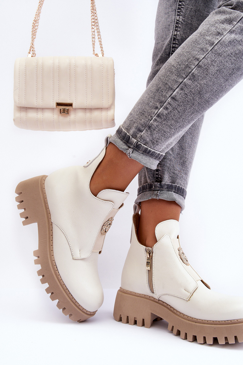 Жіночі шкіряні чоботи з декором світло-бежевий Lusanna