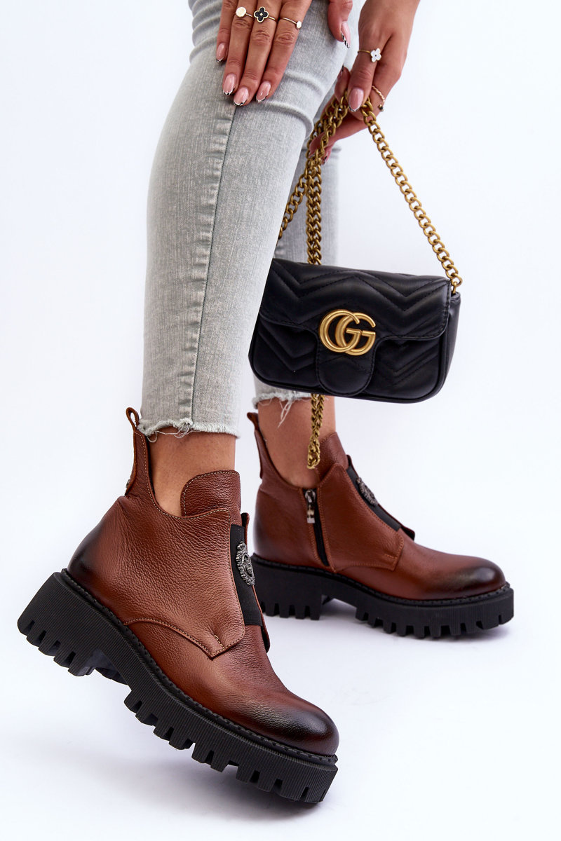 Жіночі шкіряні чоботи з орнаментом коричневі Lusanna