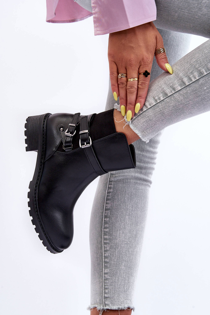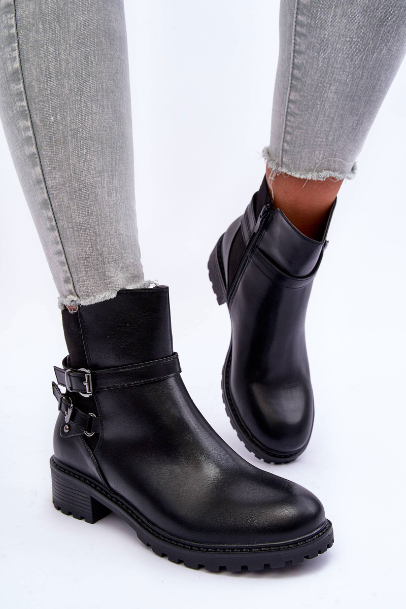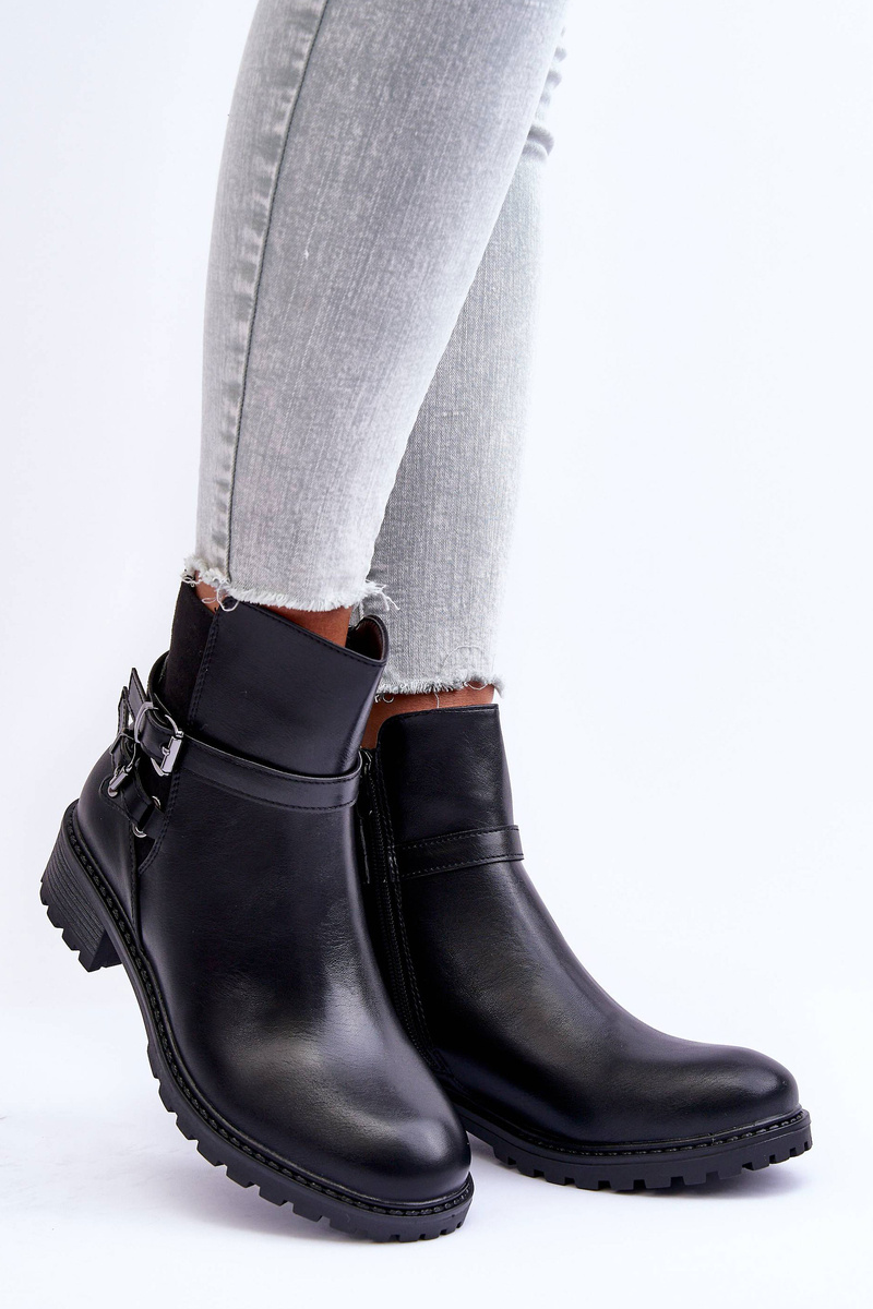 Черевики жіночі виготовлені з еко шкіри. Комплект на плоскій каблуці і платформі. Дана модель застібається на блискавку збоку. Верх прикрашений тонкими ремінцями з пряжкою. Взуття утеплене взуттєвою ковдрою. Ця модель повинна бути у вашому гардеробі! При виборі розміру орієнтуйтеся на таблицю розмірів.