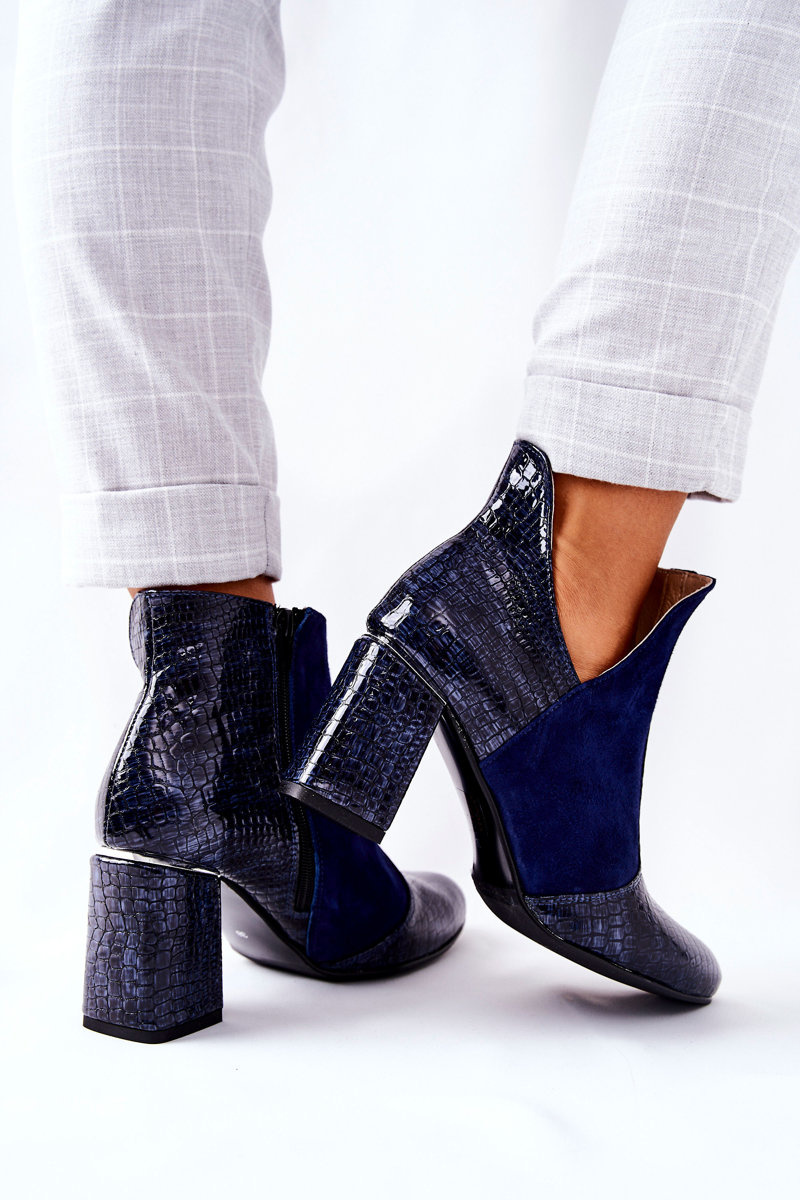 Жіночі шкіряні чоботи на каблуці темно-сині I Wish
