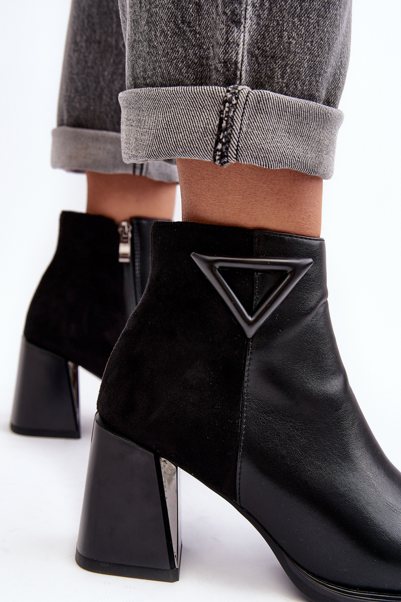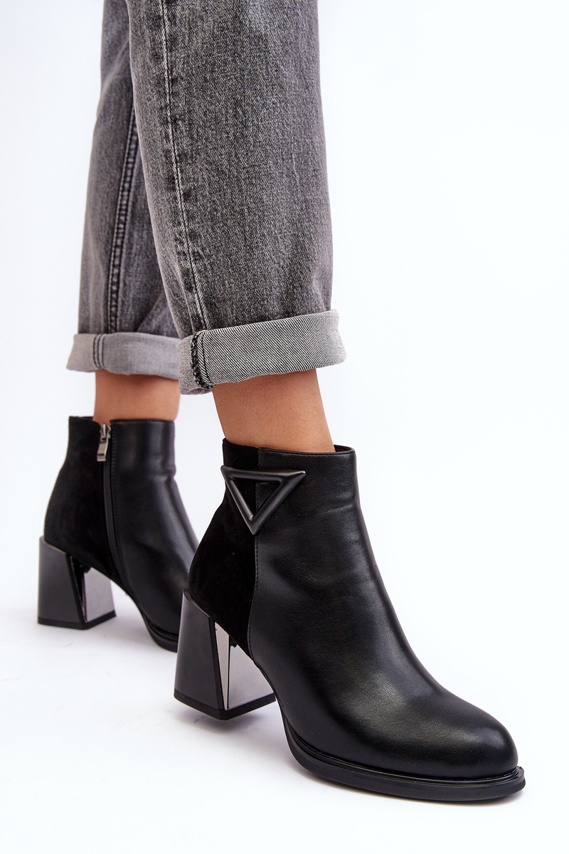 Черевики жіночі з комбінації еко шкіри та еко замші. Набір на каблук у вигляді стовпчика. Пальці ніг округлі. Верх до щиколотки. Застібається на блискавку. Зсередини взуття було утеплено м’якою взуттєвою ковдрою. Ідеально підходить для осіннього вбрання! Вибираючи розмір, орієнтуйтеся на таблицю розмірів.