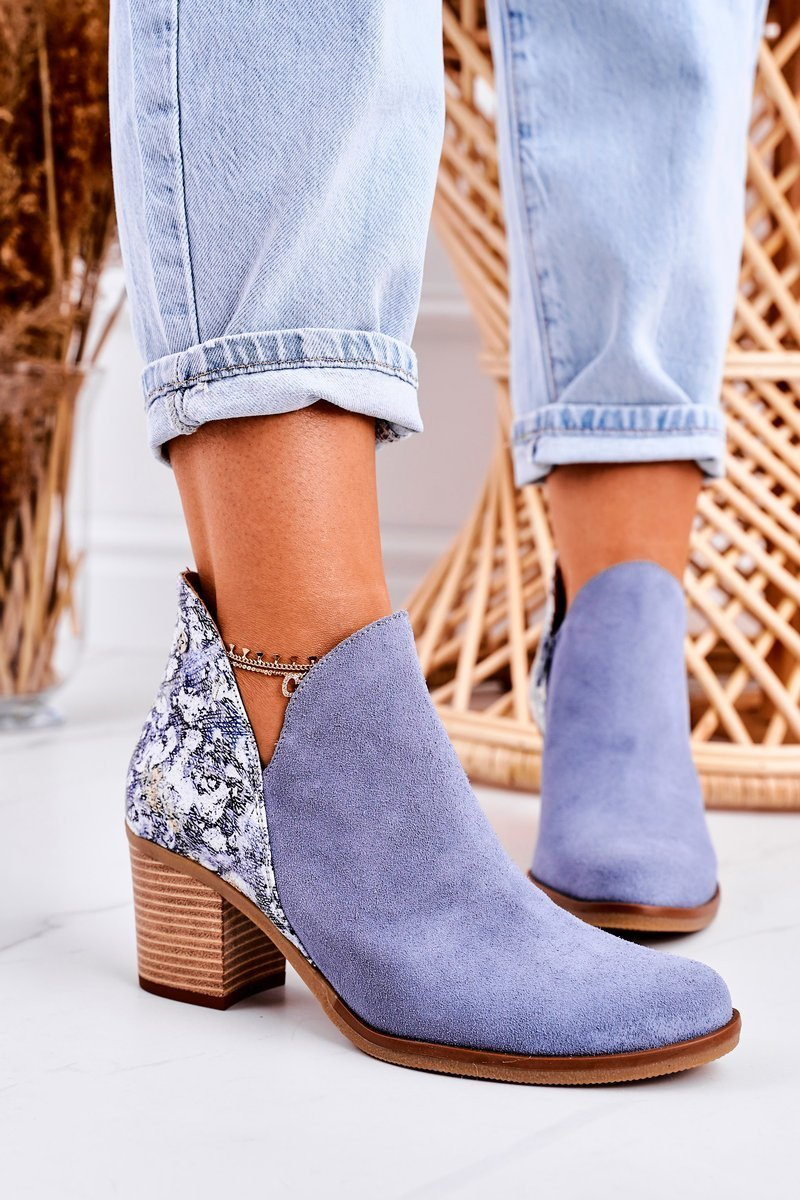 Жіночі шкіряні чоботи на каблуці Maciejka Light Blue 04492