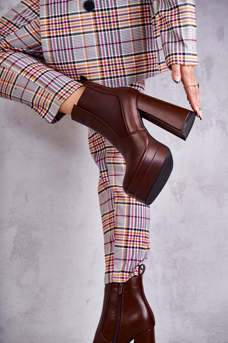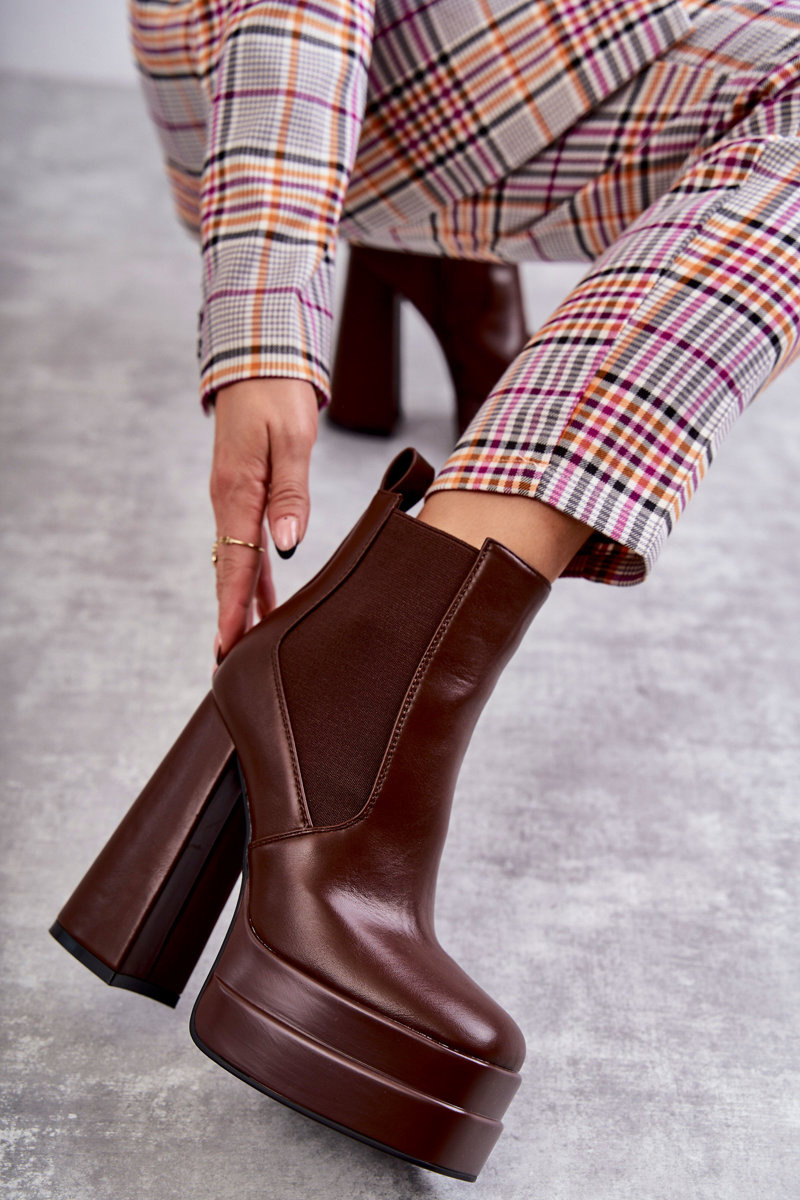 Жіночі шкіряні чоботи на масивному каблуці Brown Jones