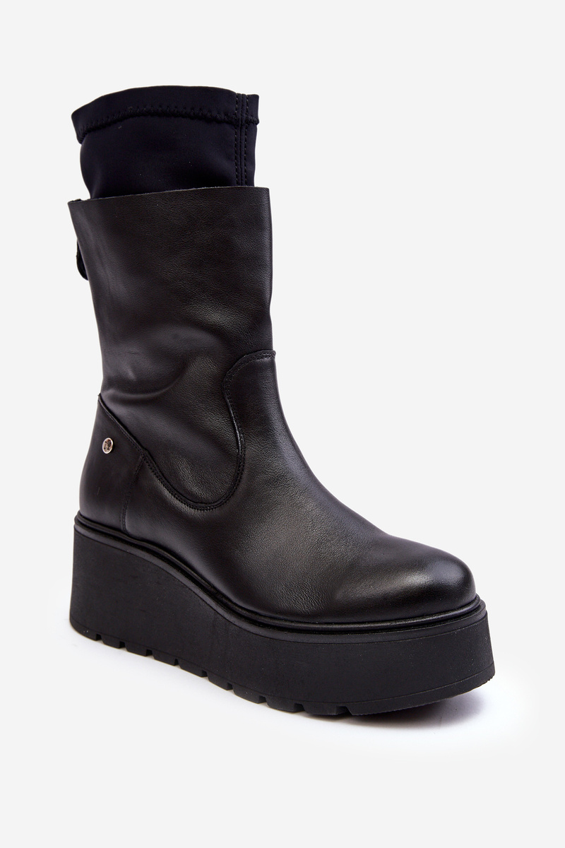 Жіночі шкіряні чоботи на масивній платформі Maciejka A7161-01 Чорні