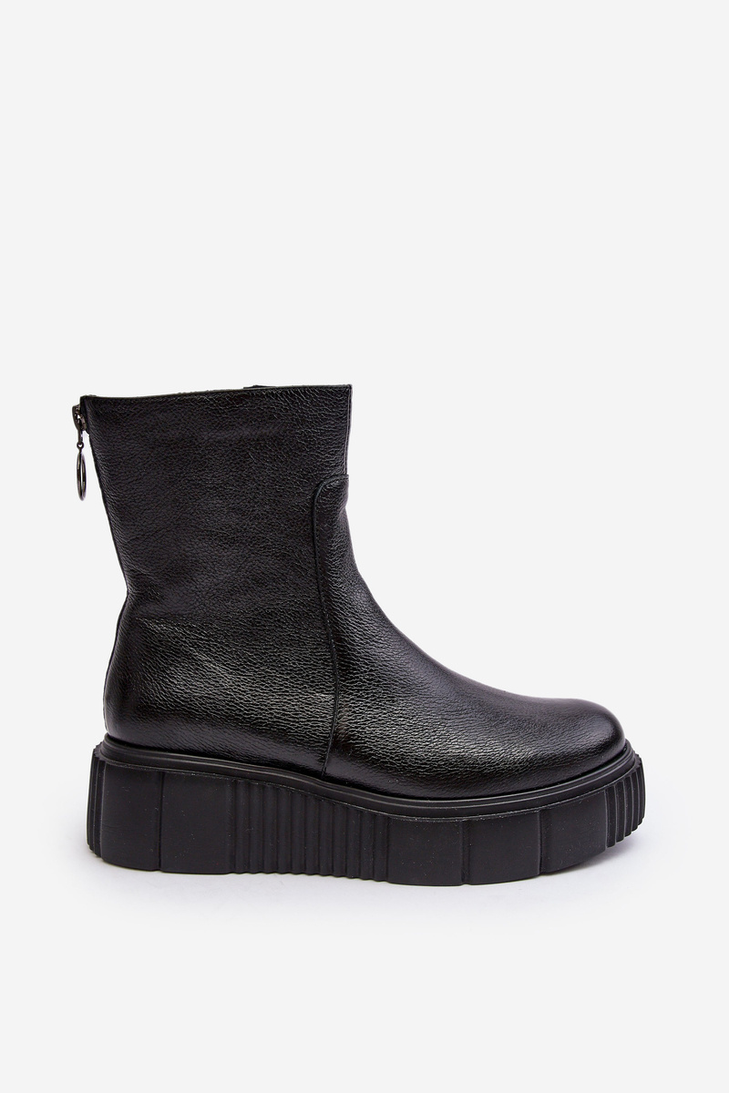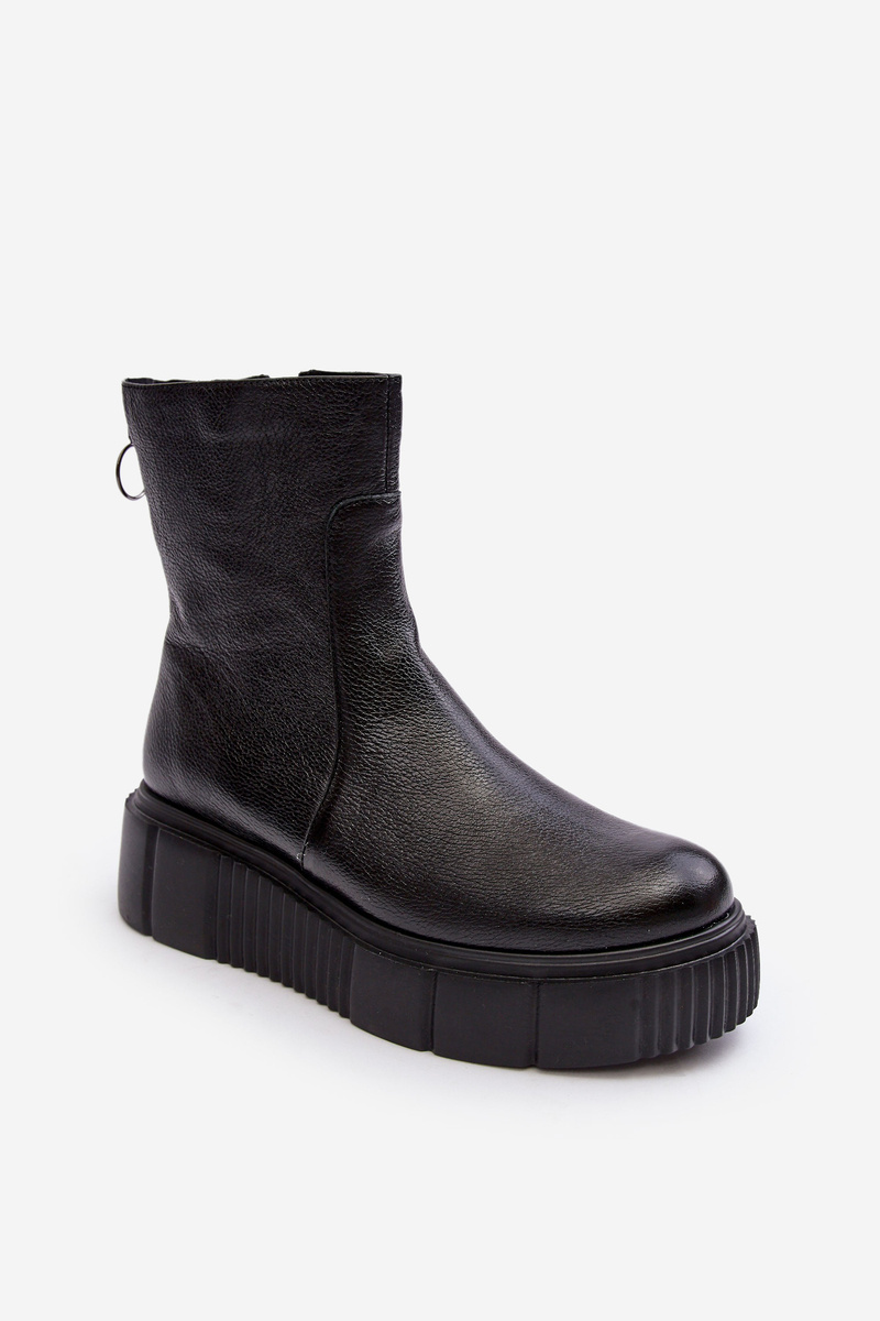 Жіночі шкіряні чоботи на платформі Чорні Jenefer