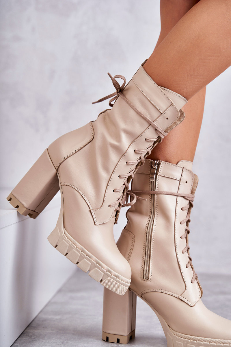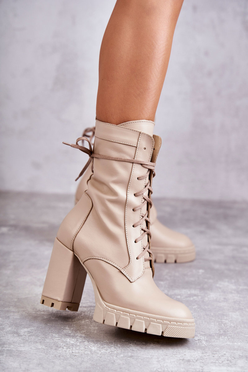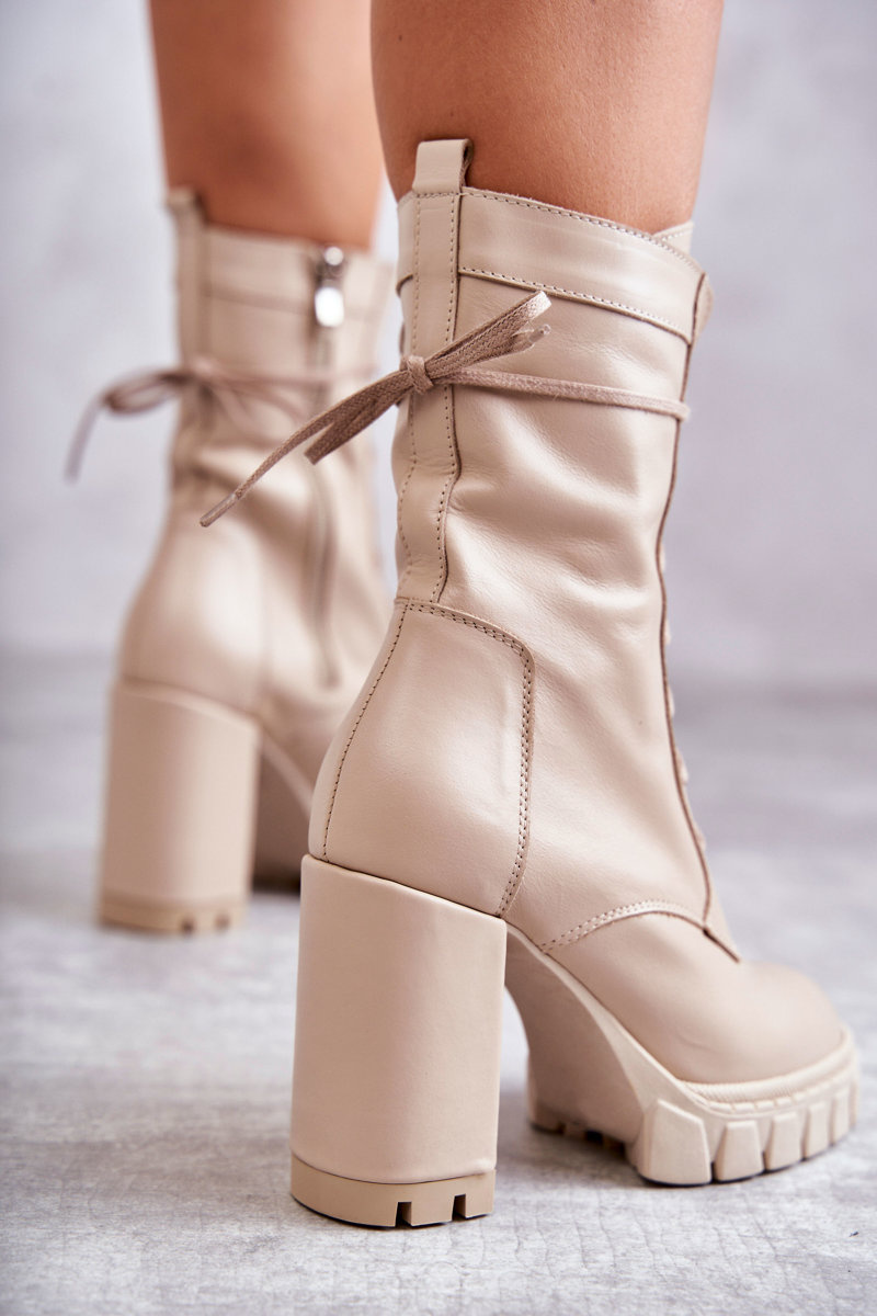 Жіночі шкіряні чоботи на платформі бежеві Edna
