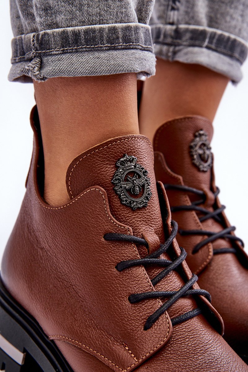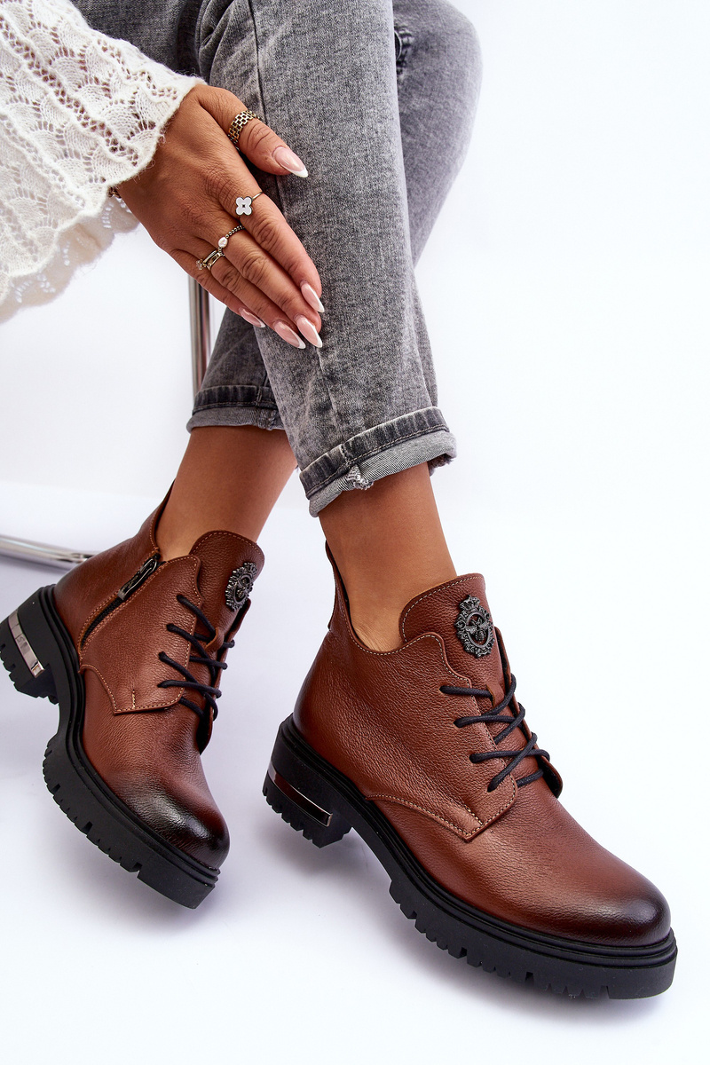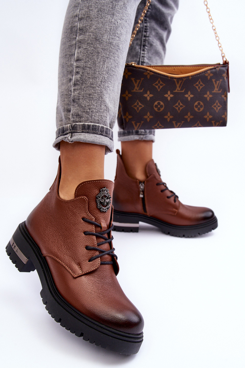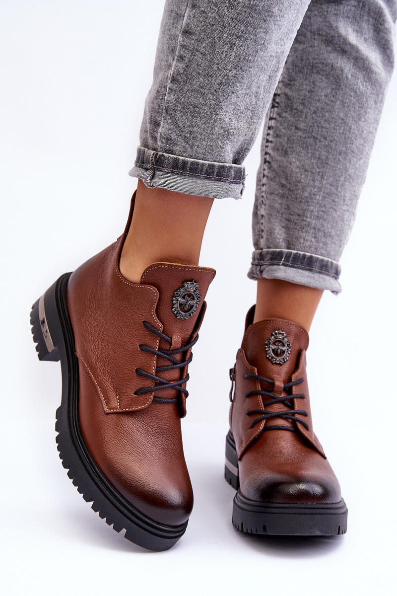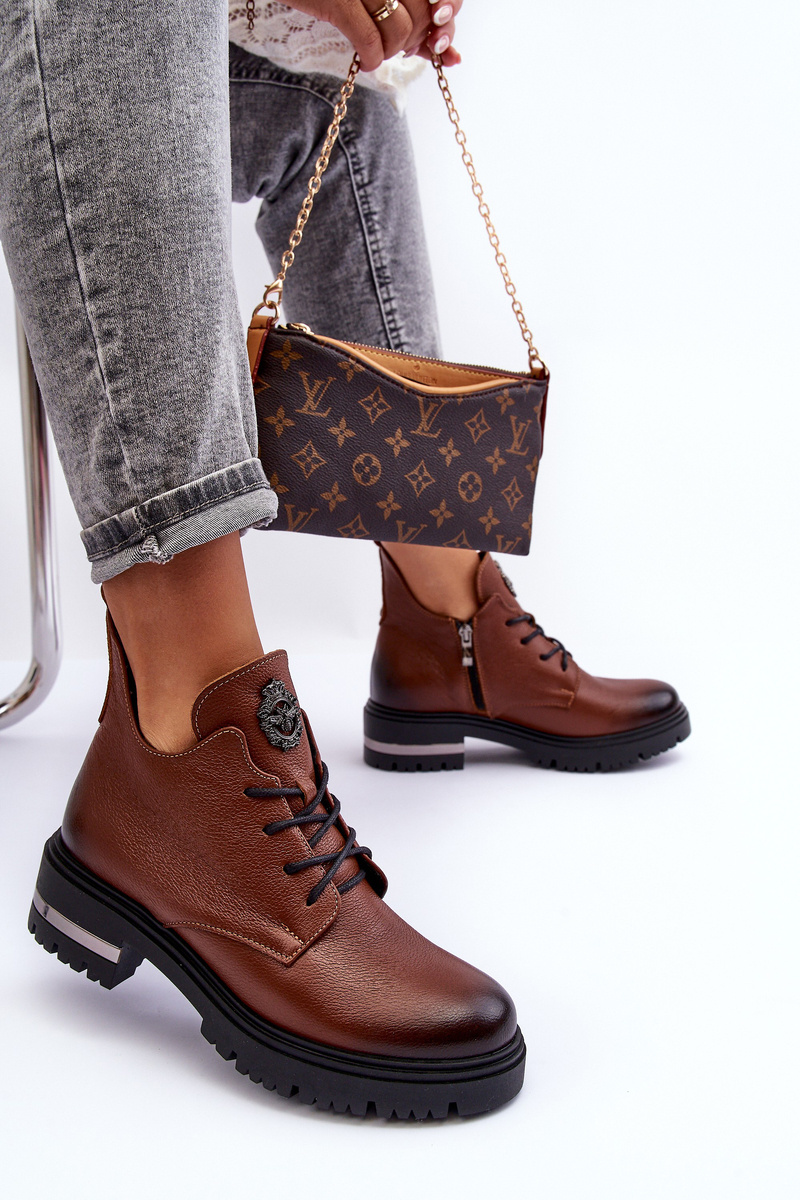 Модні чобітки з орнаментом на язичку. Вони виготовлені з високоякісної натуральної шкіри. Черевики застібаються на блискавку та шнурівку. Нерегулярний верх підкреслить багато стилів! Черевики кріпляться на плоскій каблуці і платформі. Утеплений взуттєвою ковдрою. М'яка устілка забезпечить комфорт під час використання. При виборі розміру скористайтеся таблицею розмірів.