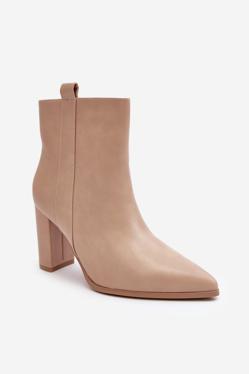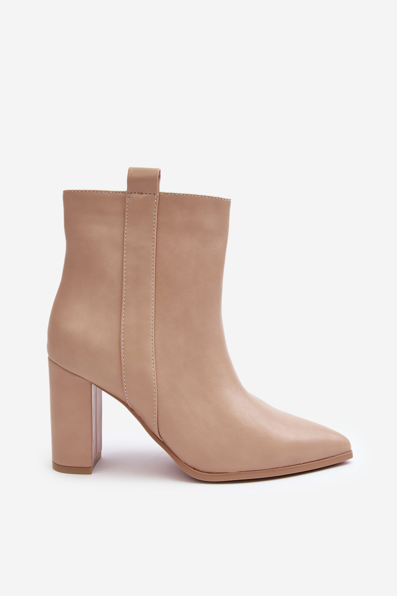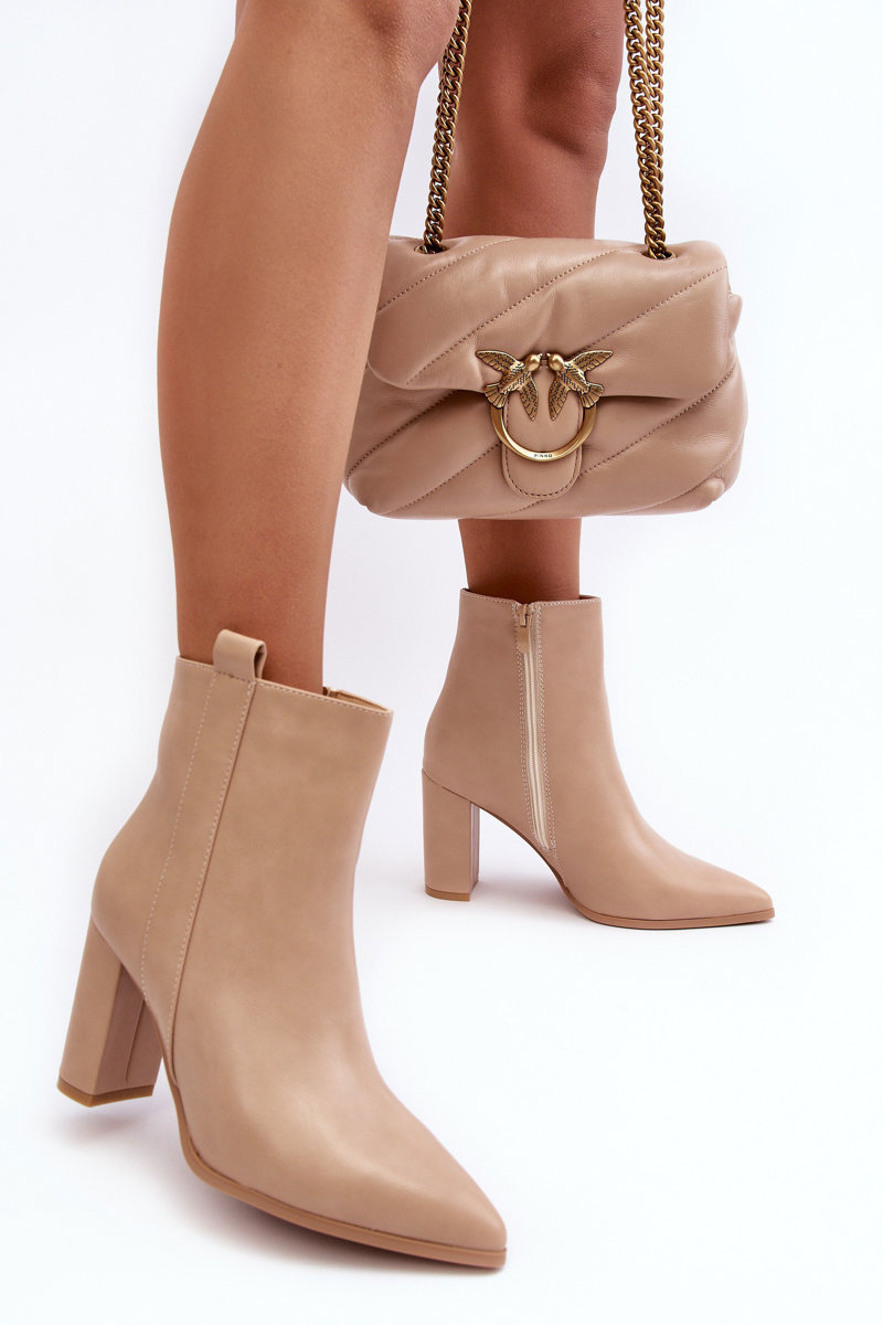 Жіночі шкіряні чоботи на підборах бежеві Vevine