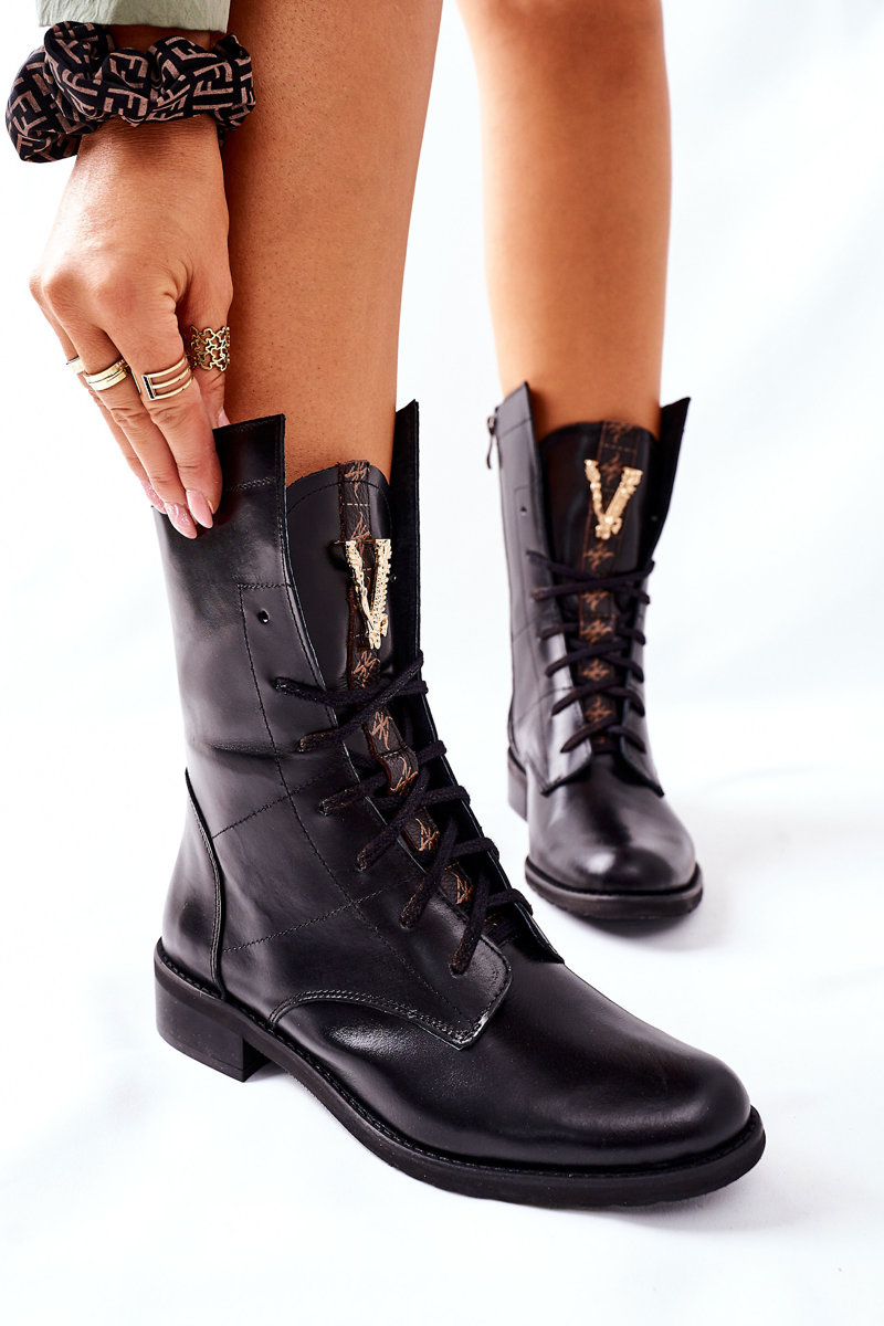 Красиві та модні чоботи від Nicole. Чоботи повністю з натуральної шкіри. Високі черевики до литок. Ніжний декор на язичку у вигляді золотистої літери V. Класичні шнурки з додатковою блискавкою збоку. Перегляньте всю колекцію Ніколь. Обираючи розмір, зверніться до таблиці розмірів.