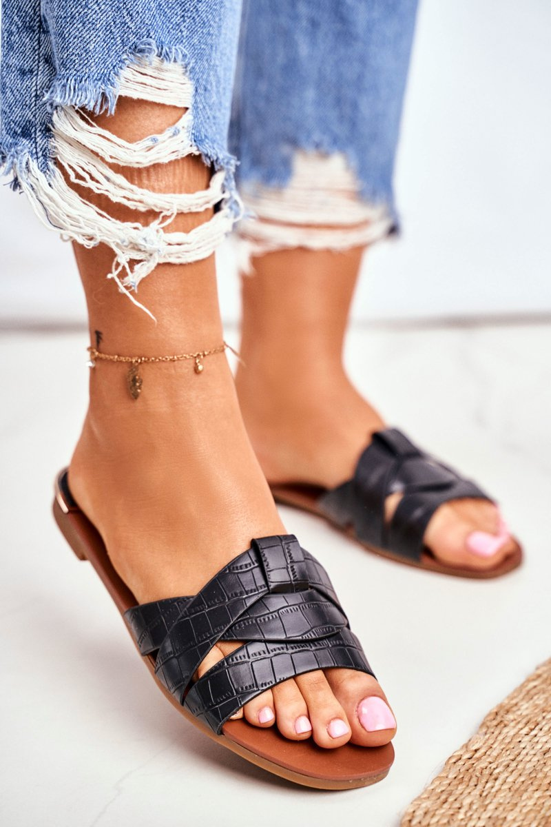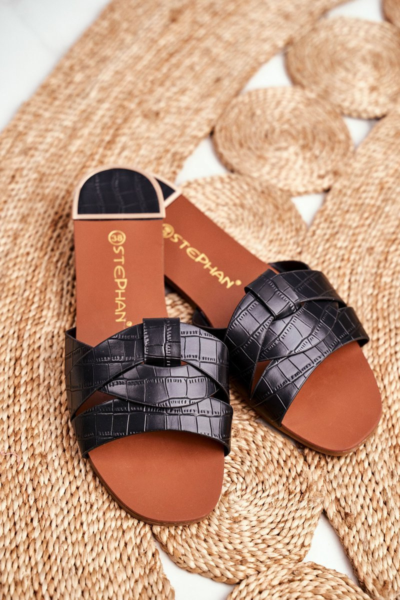 Жіночі шльопанці зі зміїною шкірою Black Chance