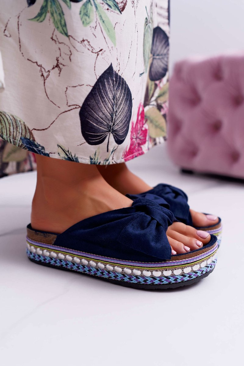 Чудова і всесвітньо відома модель шльопанців з бантами тепер у новому дизайні! Товста підошва, прикрашена заклепками і різнокольоровою зав'язкою, не дозволяє відвести від них погляд. М'який матеріал, з якого вони виготовлені, і профільована устілка робить їх надзвичайно комфортними. Під час вибору розміру зверніться до таблиці розмірів, яка доступна після наведення вказівника на певний розмір або клацання на ньому.