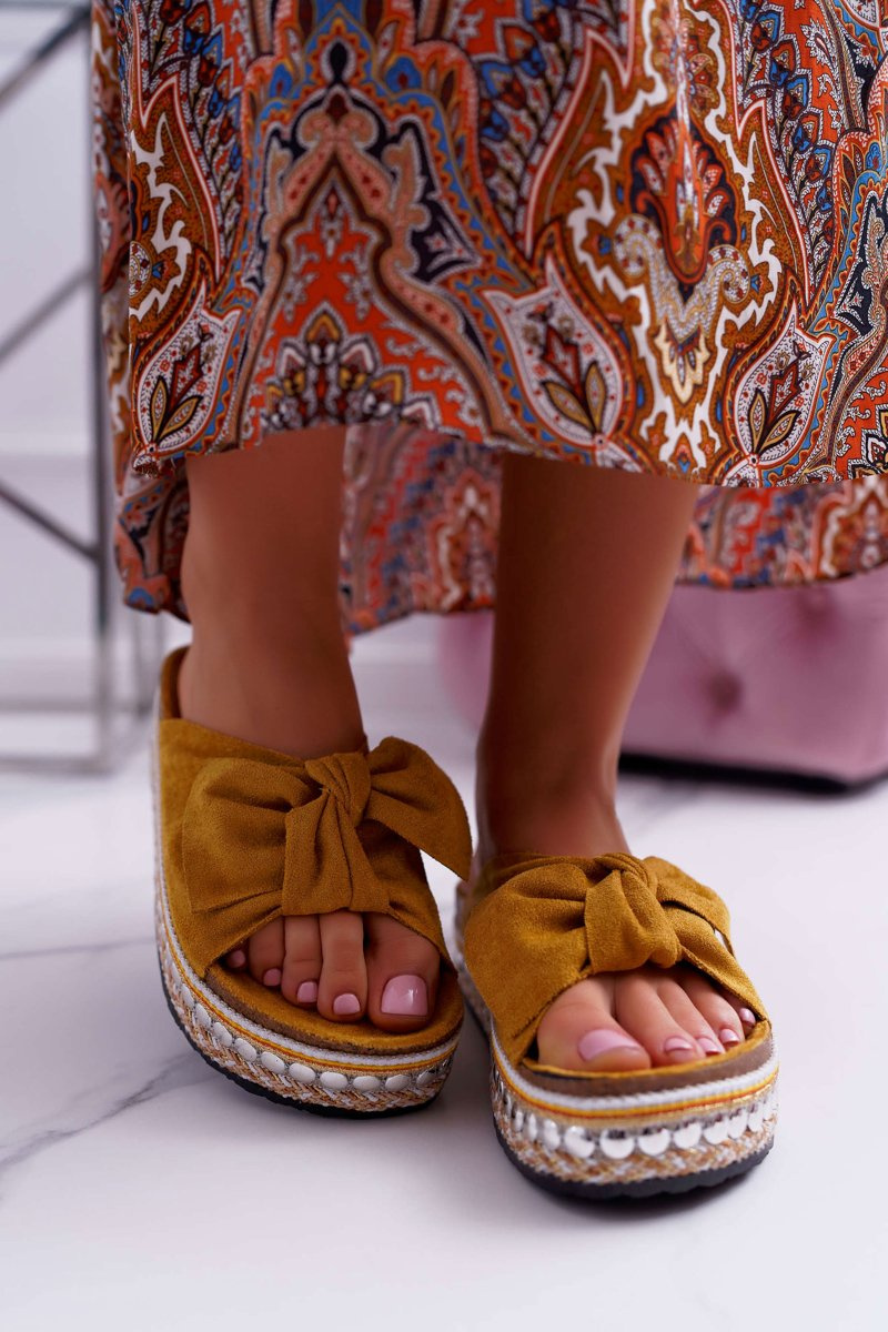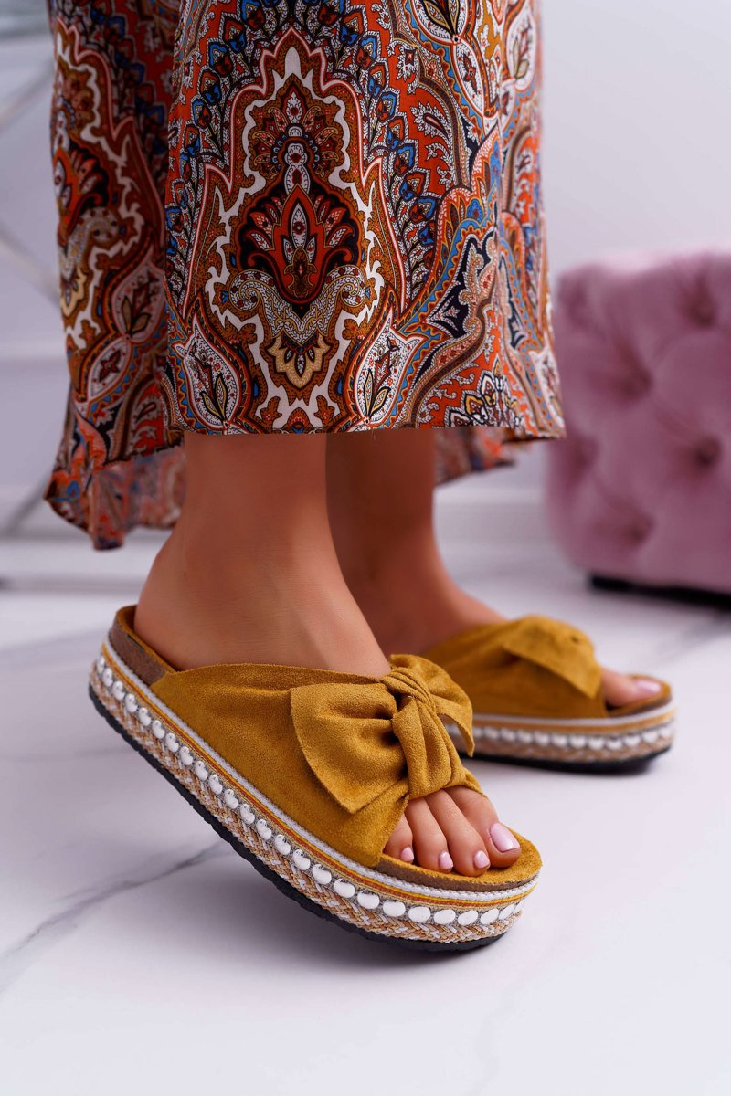 Жіночі шльопанці з кокардами на товстій підошві Жовта Міледі