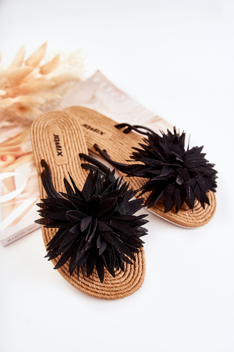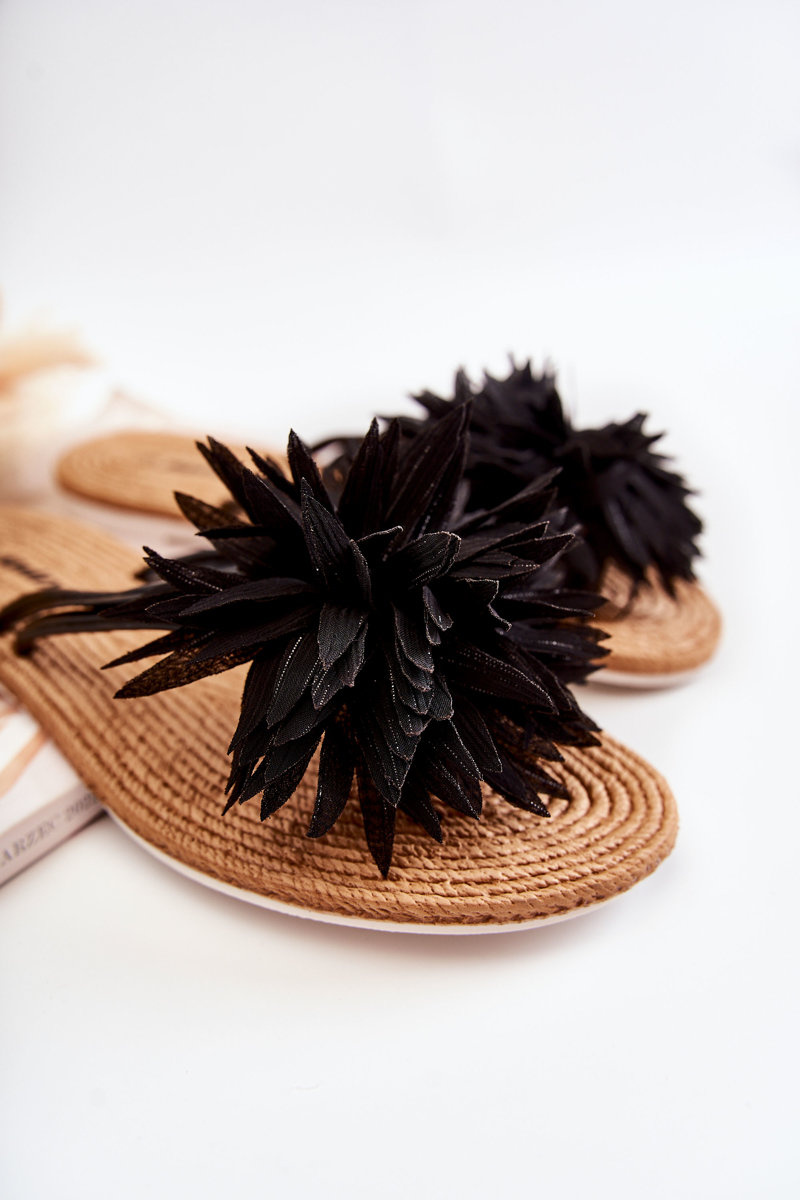 Жіночі шльопанці з тканинним орнаментом Чорні Eviana
