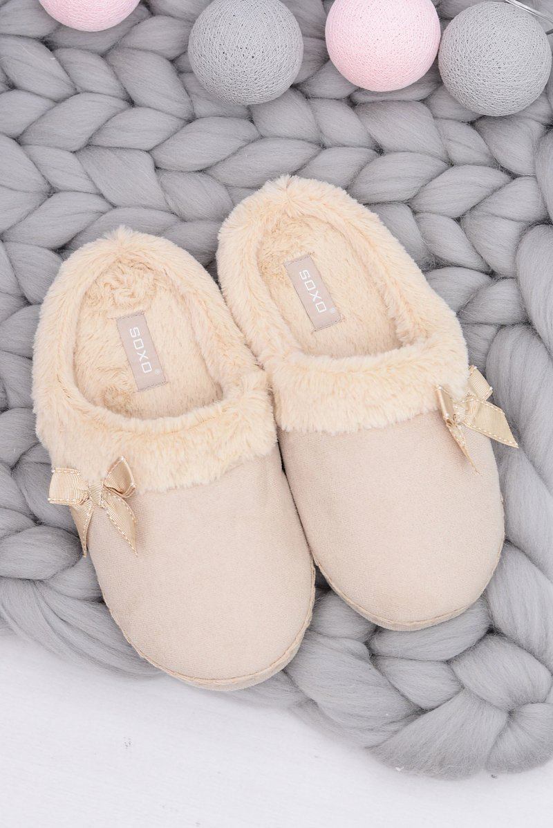 Холодна погода для нас не найприємніша, і її найкраще проводити в домашніх зручних капцях. Ідеальним доповненням до теплої ковдри та чаю стане ця чудова колекція теплих тапочок від SOXO! В'єтнамки з ніжним хутряним утепленням чудово окутають ваші ніжки, подарувавши розраду довгими зимовими вечорами. Прикраса бантом підкреслює їх чарівний зовнішній вигляд. Доступний у двох кольорах. Про нашу безпеку на слизькій поверхні подбає гумова підошва з виступами.