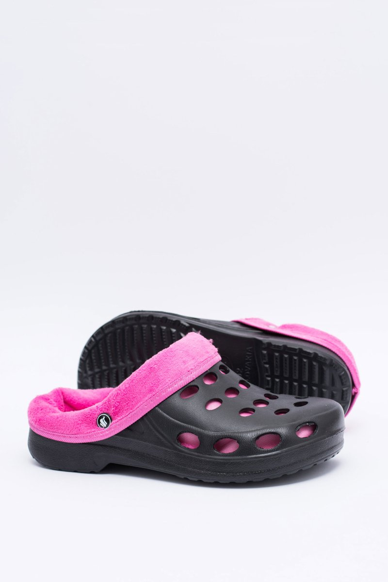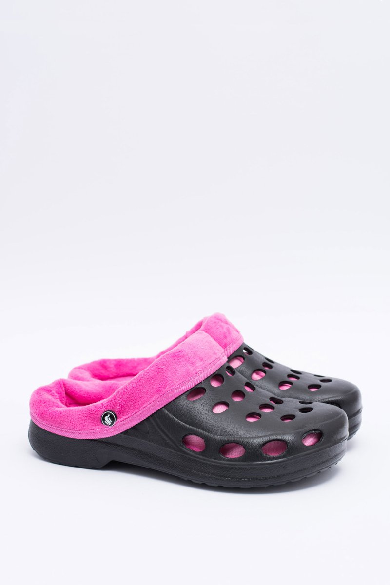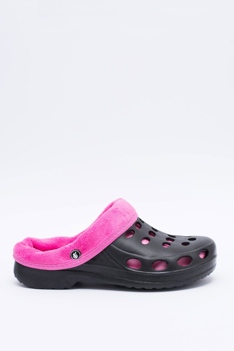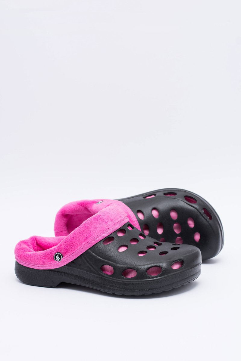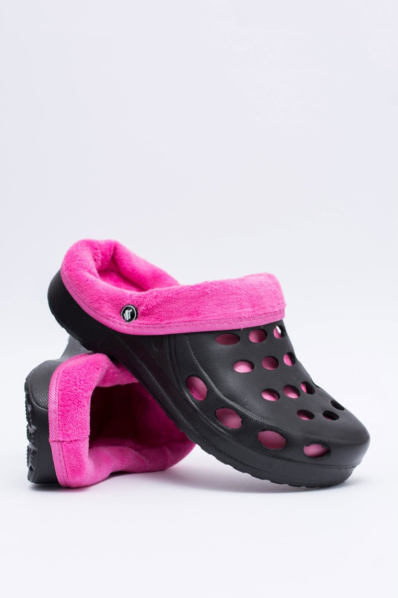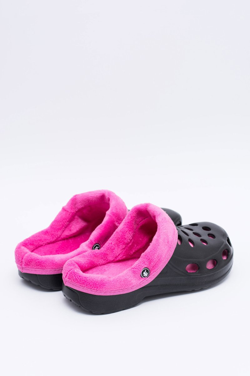 Жіночі шльопанці утеплені чорно-рожеві Kroks EVA