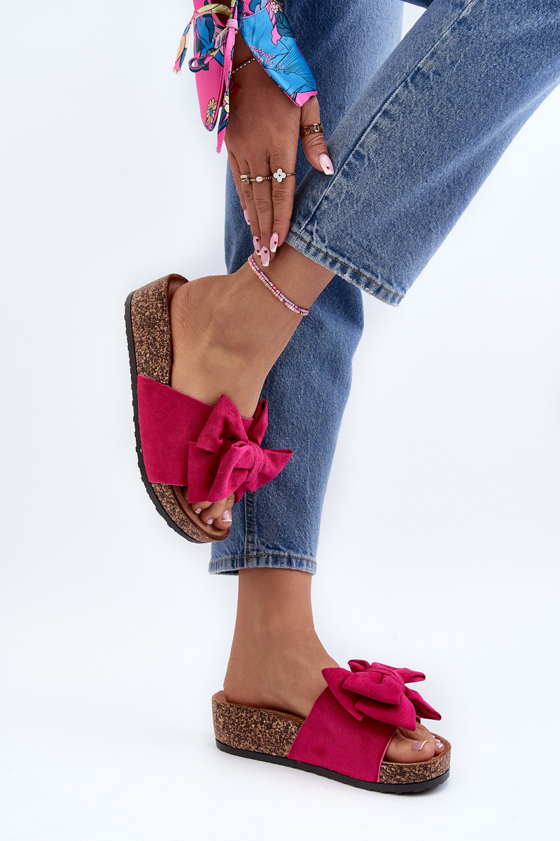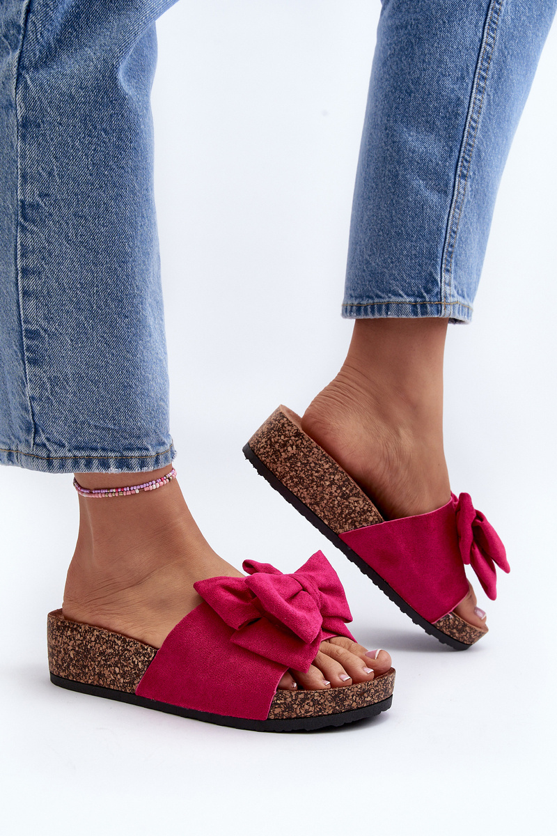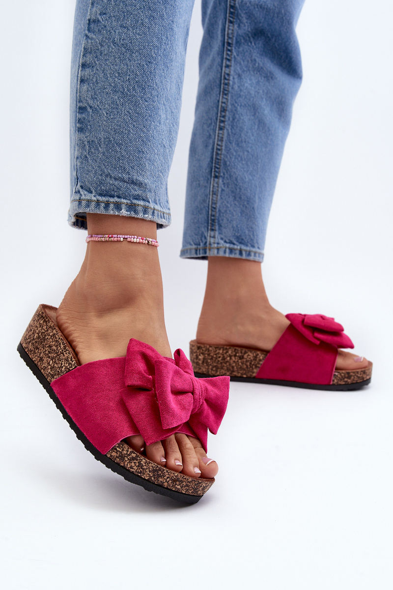 Жіночі босоніжки на корковій платформі. Взуття має злегка профільовану устілку, що забезпечить комфорт під час використання. Верх виконаний з приємної на дотик еко замші. Чудовий бант спереду. Ця модель ідеально підійде для повсякденного носіння, для роботи або походу по магазинах. Ідеально підходить для спекотних днів! Ви точно повинні їх мати! Обираючи розмір, орієнтуйтеся на таблицю розмірів.
