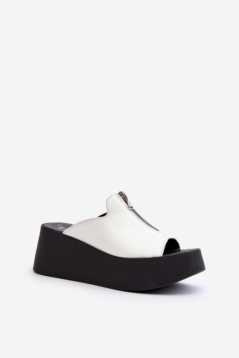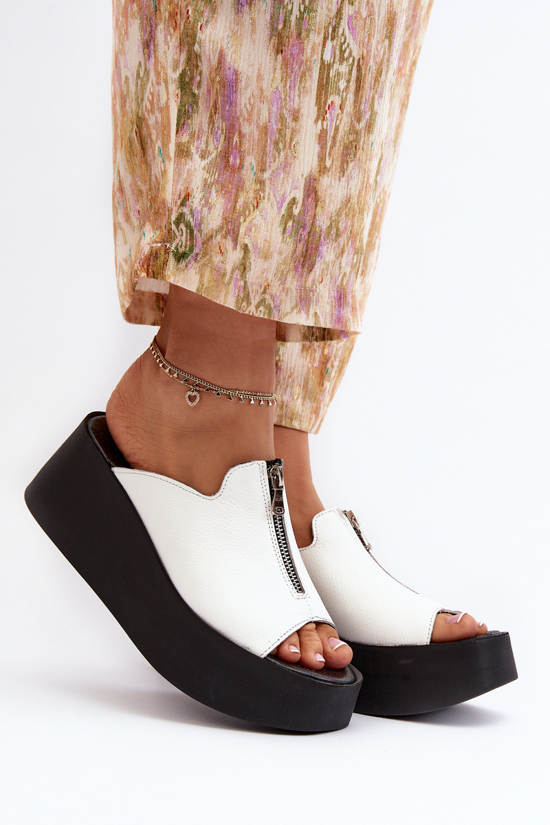 Стильні жіночі шльопанці на масивній платформі. Виготовлений з натуральної шкіри. Декоративна блискавка спереду верху. М'яка шкіряна устілка забезпечить комфорт навіть у спекотні дні! Обов’язково перегляньте всю нашу колекцію жіночих шльопанців! Обираючи розмір, орієнтуйтеся на таблицю розмірів.