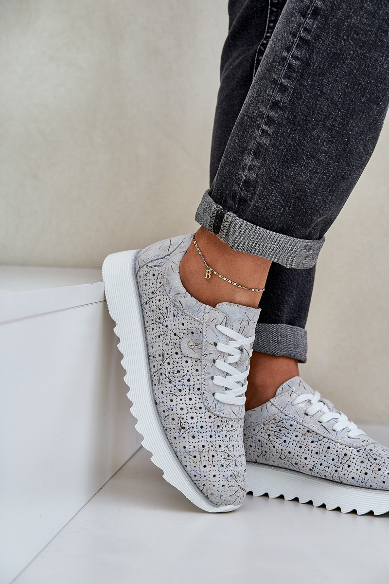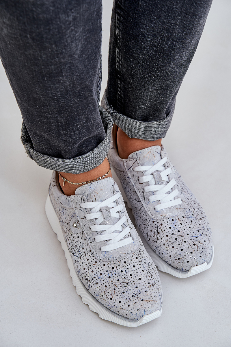 Спортивне взуття з візерунковим, перфораційним верхом є стильним варіантом для щоденного носіння. Встановлені на платформі з блискітками, вони додають блиску кожному образу. Виготовлені з натурального замшу, вони гарантують міцність, а м'яка шкіряна устілка забезпечує комфорт протягом усього дня. Ідеальне поєднання комфорту та модного вигляду. Будь ласка, зверніться до розмірної сітки при виборі розміру.