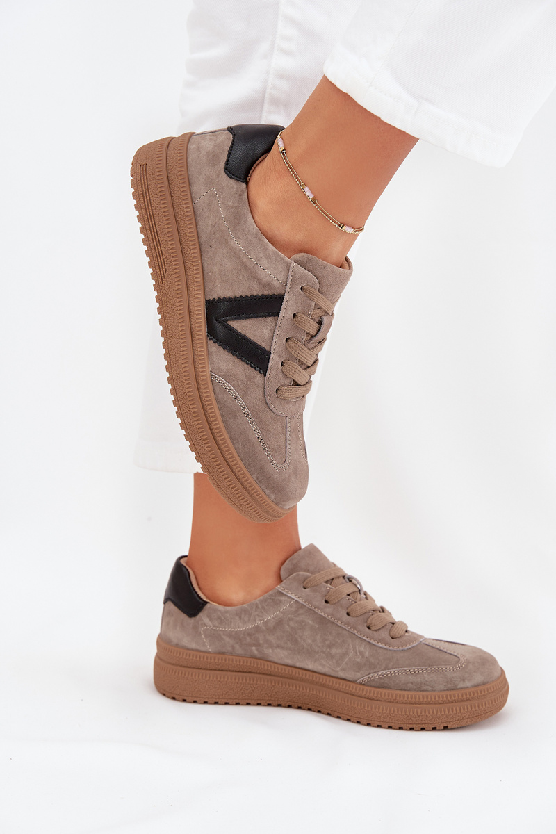 Замшеві Жіночі Кросівки На Платформі Vinceza 79562 Темно-бежеві