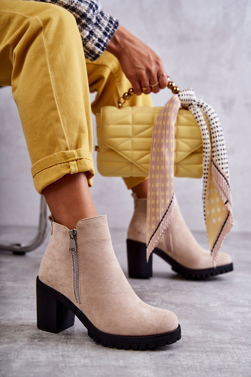 Класичні жіночі чоботи з двома блискавками з боків верху. Одна з них роз'ємна, інша лише декоративна. Чоботи кріпляться на каблук у вигляді низької стійки. Підошва з протектором забезпечує стійкість на нерівній поверхні. Туфлі виготовлені з еко замші з верхом по щиколотці. Вони мають жорсткий каблук. Чудова модель для осінніх днів! При виборі розміру скористайтеся таблицею розмірів.