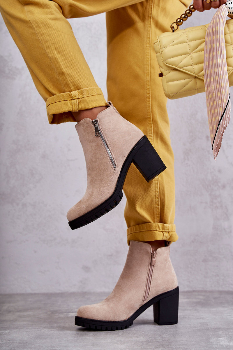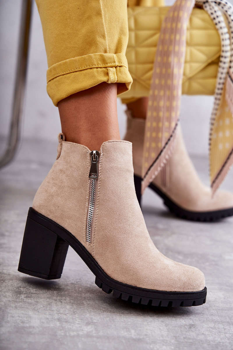 Замшеві Чоботи на високих підборах на блискавці Світло-бежеві Sevione