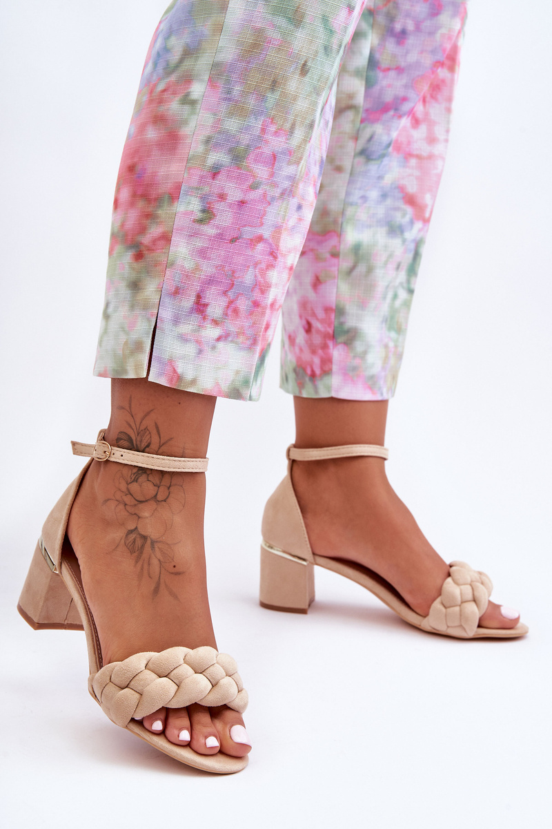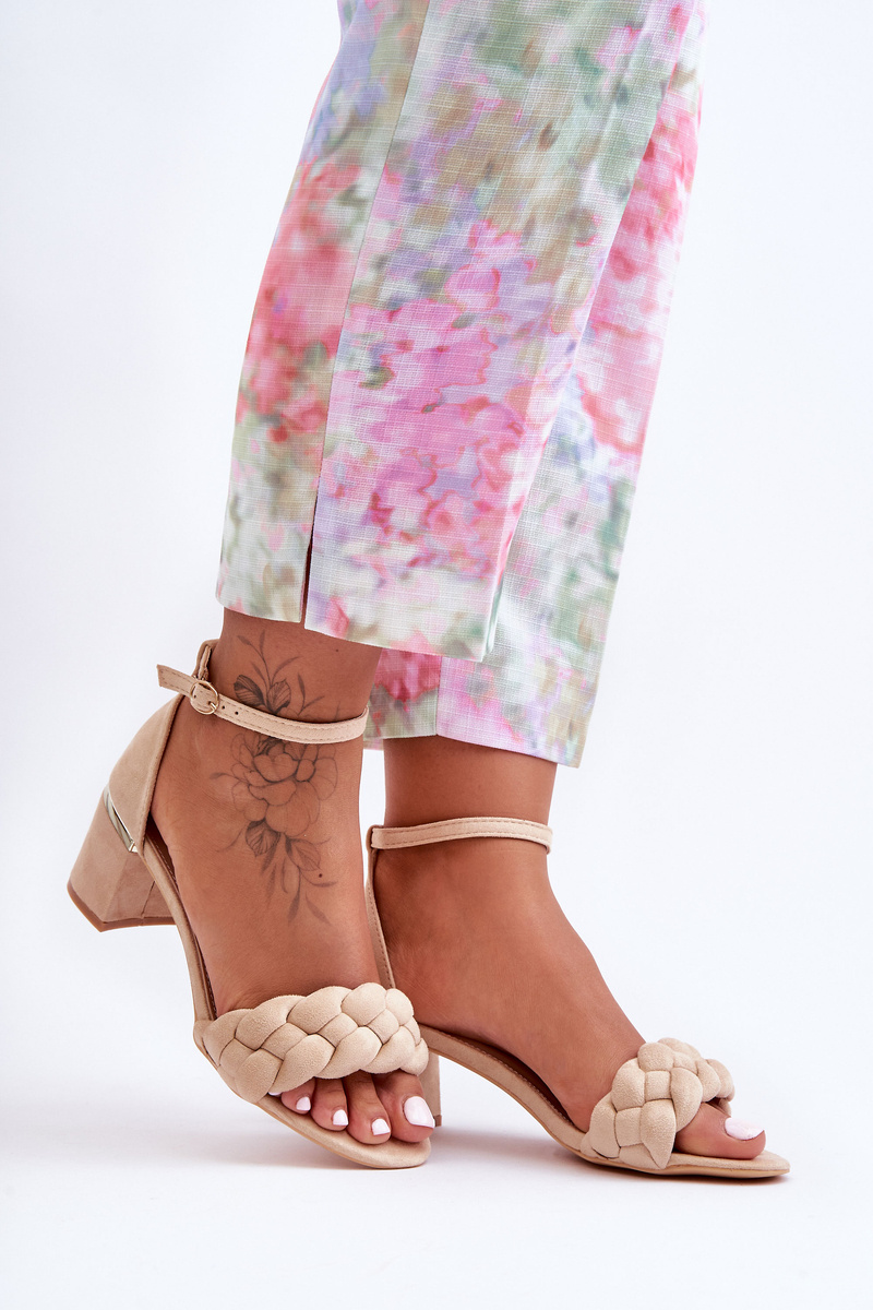 Класичні босоніжки були збагачені спереду чудовою тасьмою. Вони встановлені на невисокому каблуці у вигляді стійкого стовпа. Босоніжки виготовлені з приємної на дотик еко замші. Крім того, вони мають жорсткий носок. Устілка виконана з еко шкіри і забезпечить комфорт під час використання взуття. Кінчик відкритий, закруглений. Ця модель застібається на щиколотку регульованим ремінцем із пряжкою. При виборі розміру орієнтуйтеся на таблицю розмірів.