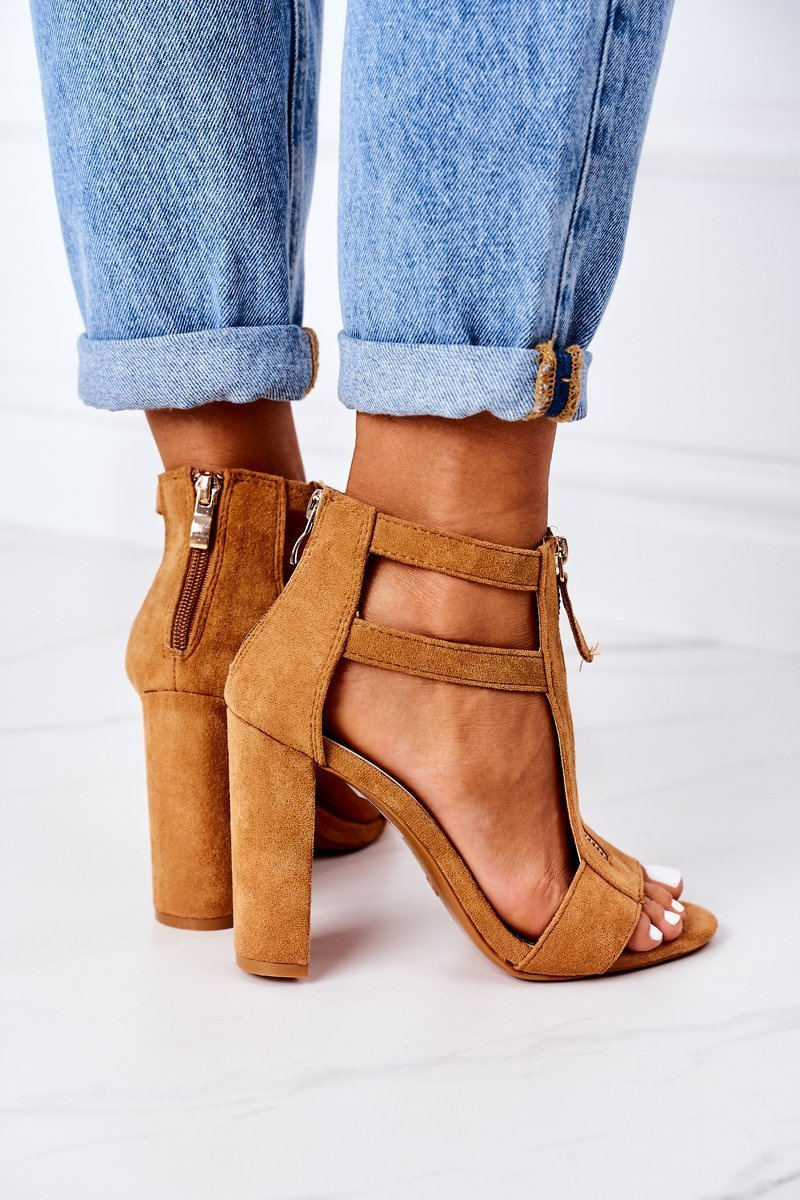 Замшеві босоніжки на блочному каблуці Camel Folly