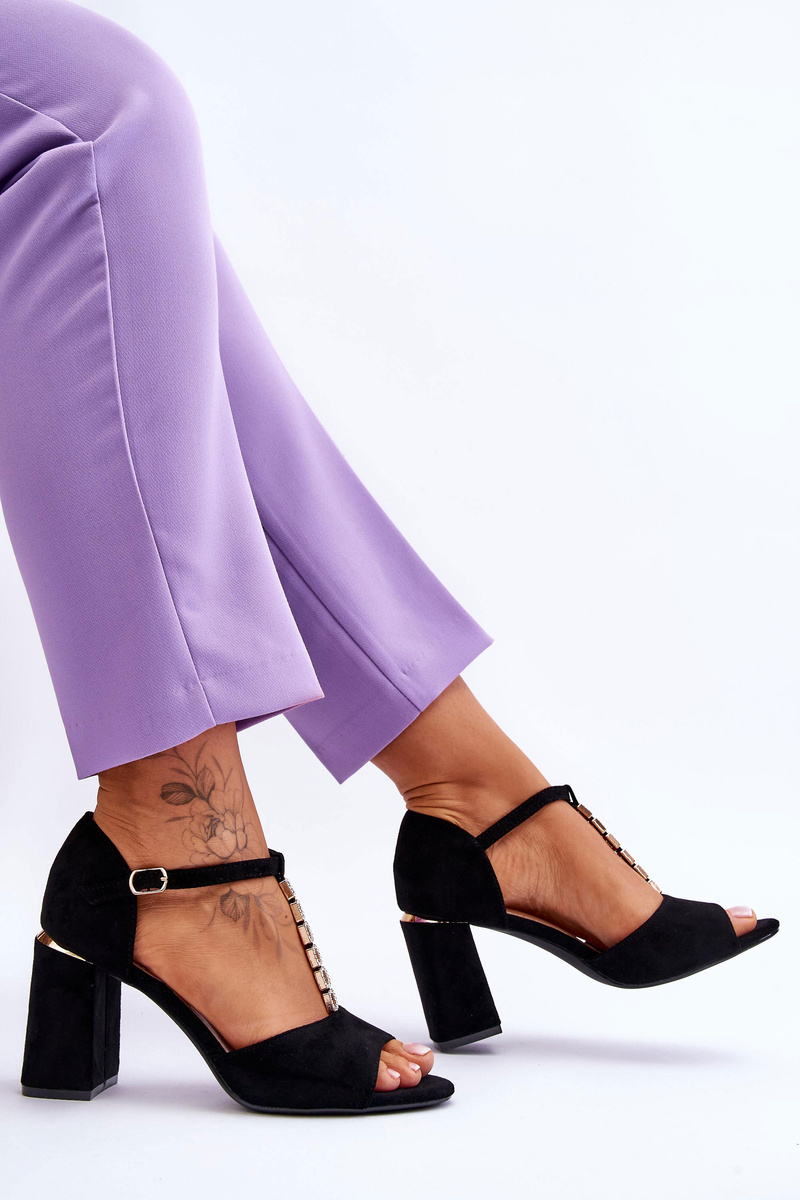 Замшеві босоніжки на високих підборах з кубічним цирконієм, чорний Aniya