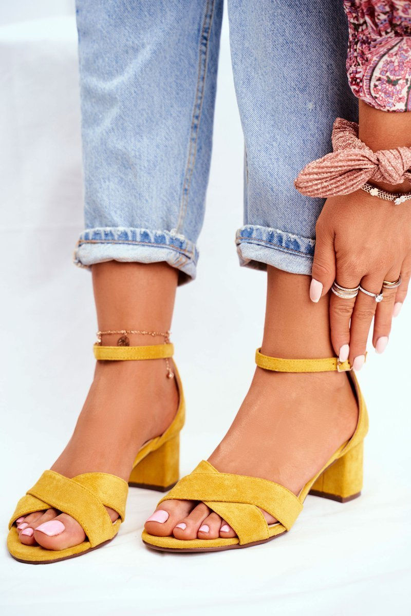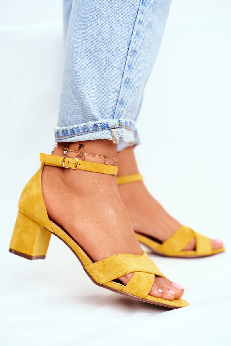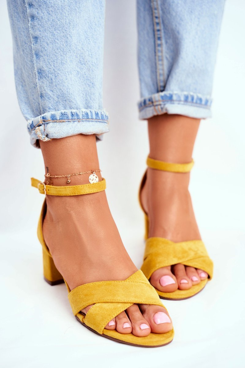 Замшеві босоніжки на високому каблуці Жовті Nela