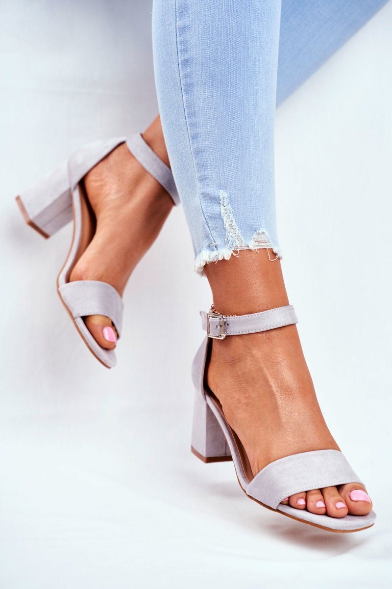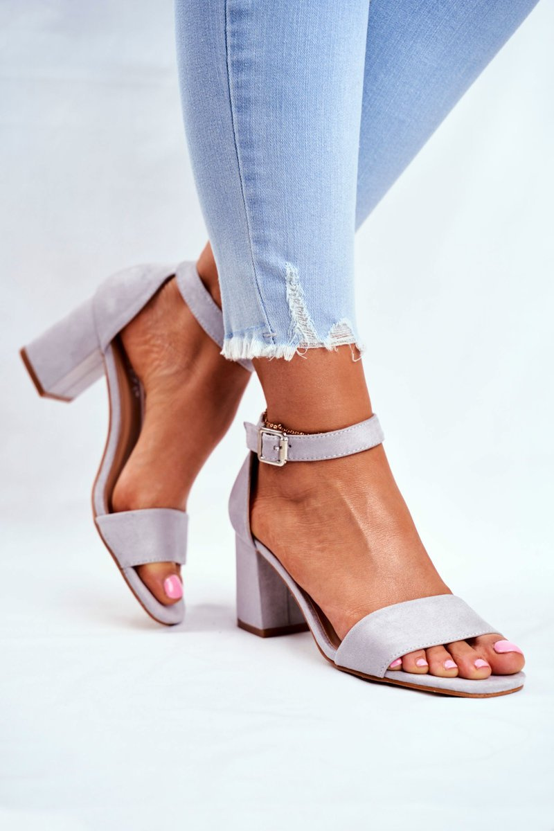Замшеві босоніжки на каблуці Vinceza 20-17058 сірі