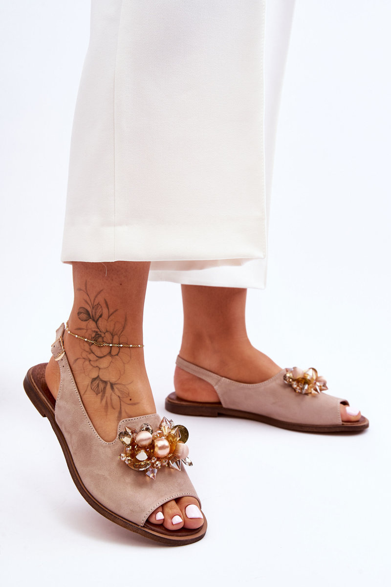 Замшеві босоніжки на плоскій підошві Nicole 2805/042 Beige