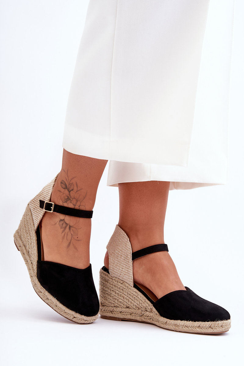 Замшеві босоніжки на танкетці Чорні Selfoss