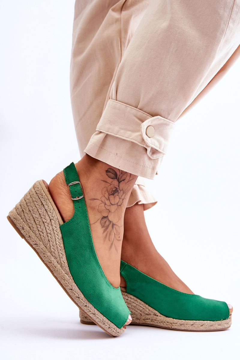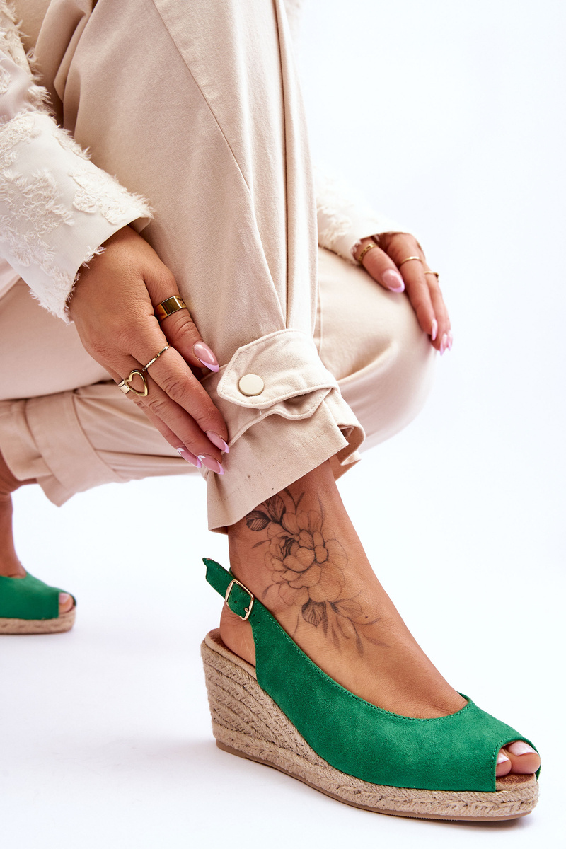 Жіночі босоніжки виготовлені з еко замші. Мають регульований ремінь із застібкою. Сандалії розміщувалися на танкетці, прикрашеній джутовою тасьмою. Підошва гумова і не ковзає. М'яка устілка з еко-замші подбає про ваш комфорт і зручність. Босоніжки ідеально підходять для літніх стилізацій. Вибираючи розмір, зверніться до таблиці розмірів.