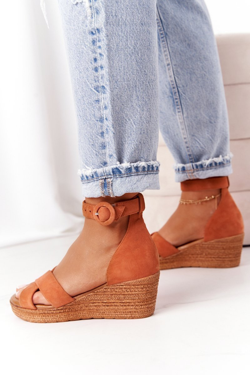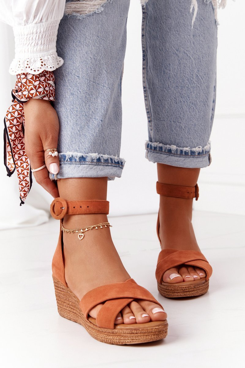 Замшеві босоніжки на танкетці Maciejka 04565-29 Camel