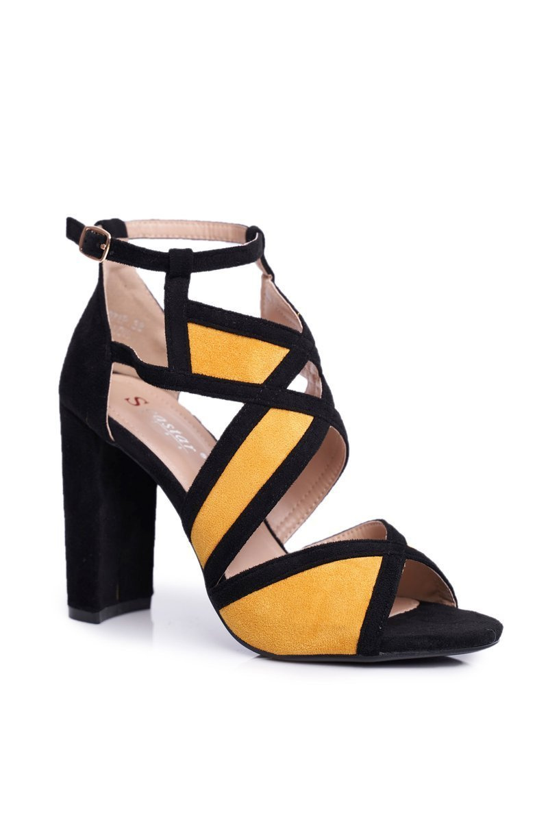 Замшеві босоніжки на шпильці чорно-жовті Емоллі