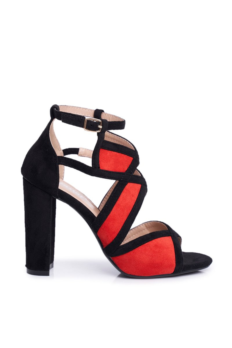 Замшеві босоніжки на шпильці чорно-червоні Емоллі