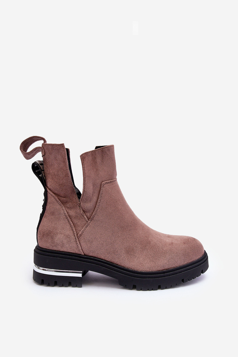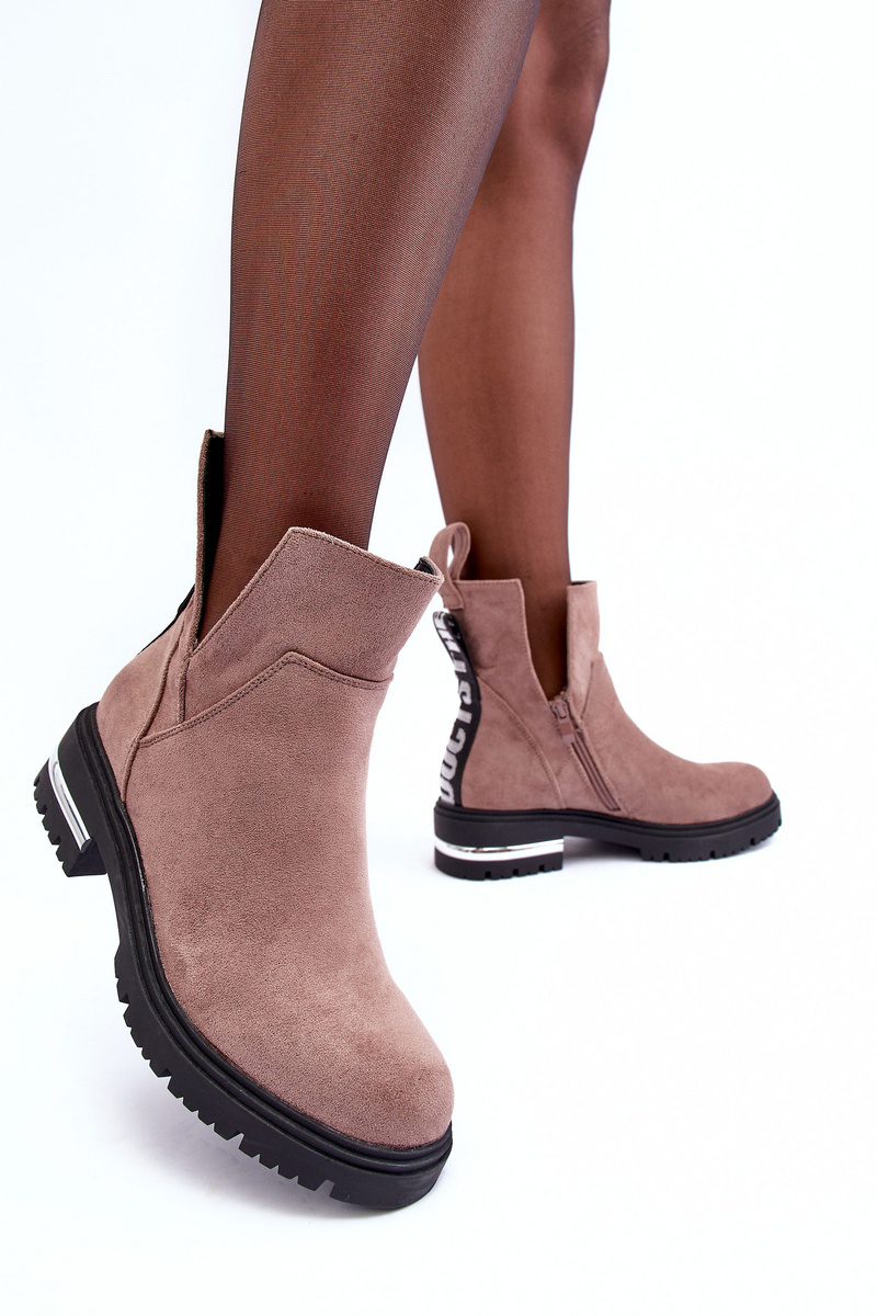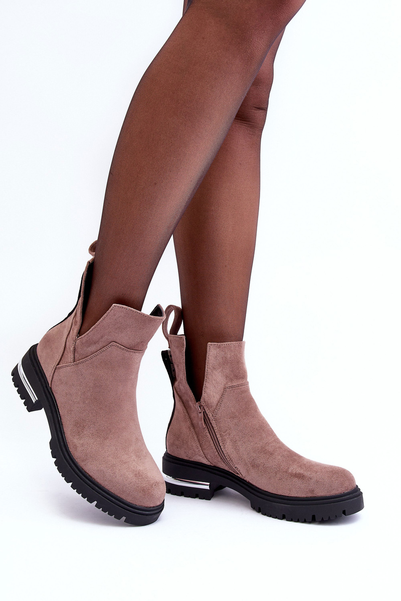 Замшеві ботильйони на плоскій каблуці та вирізах темно-бежевого кольору Lamedella