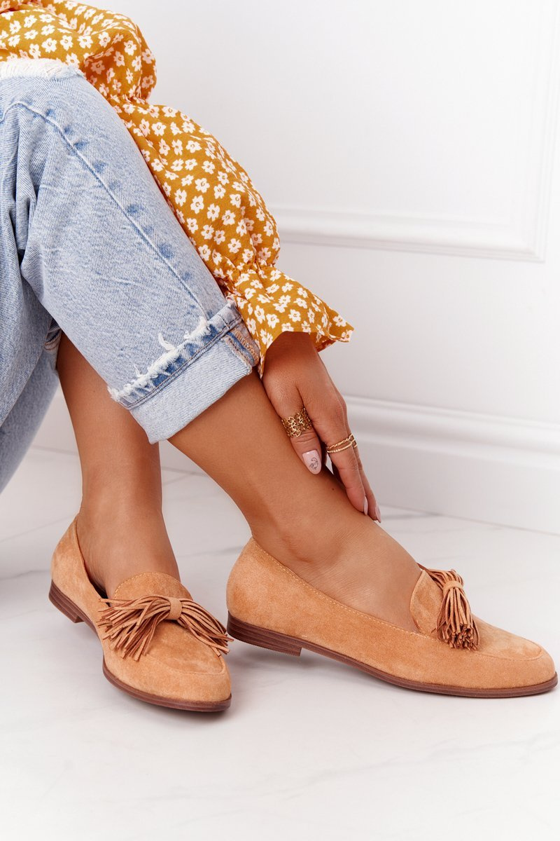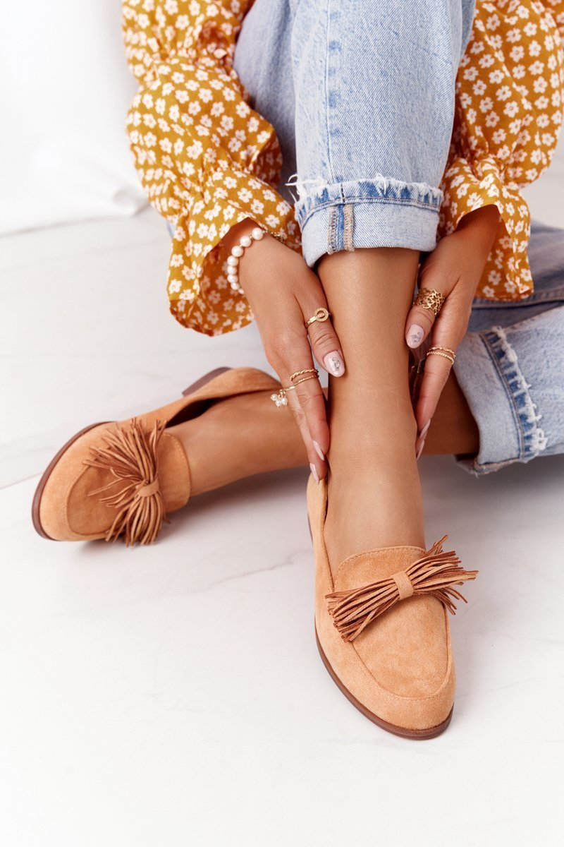 Замшеві жіночі лофери з бахромою Camel Alicante