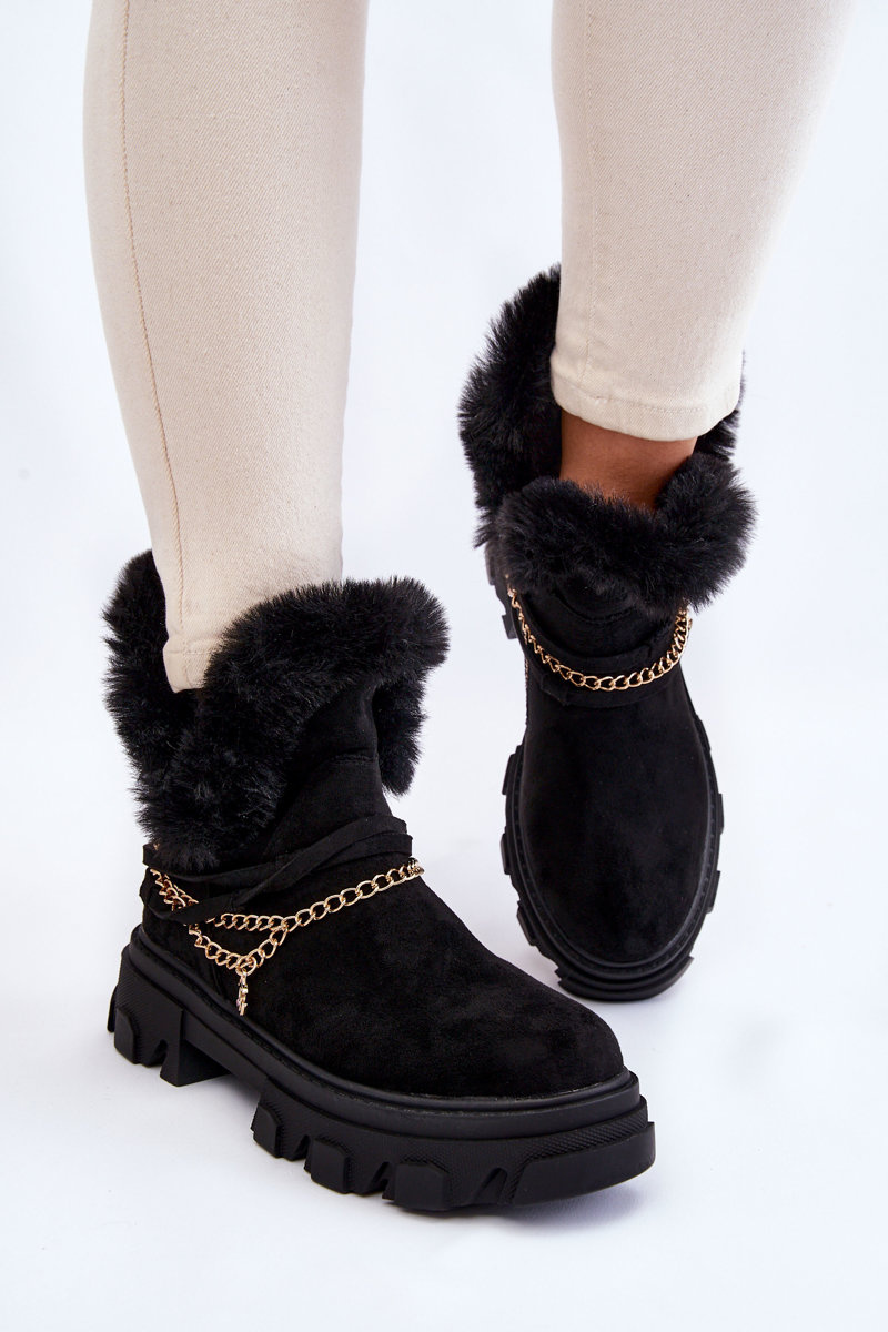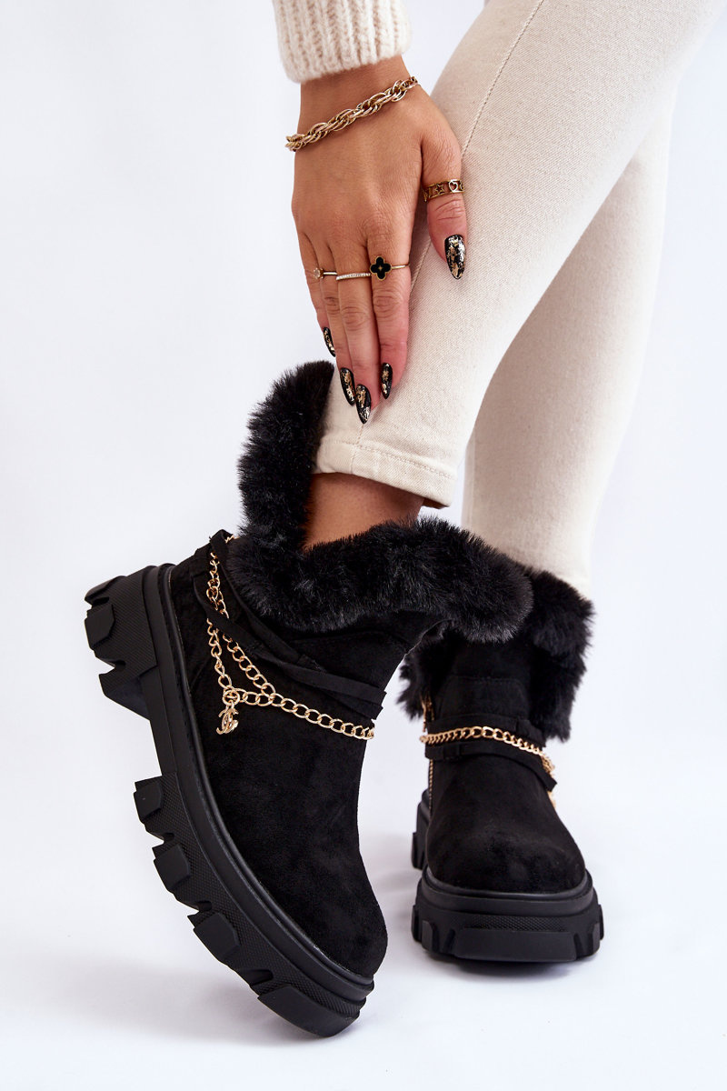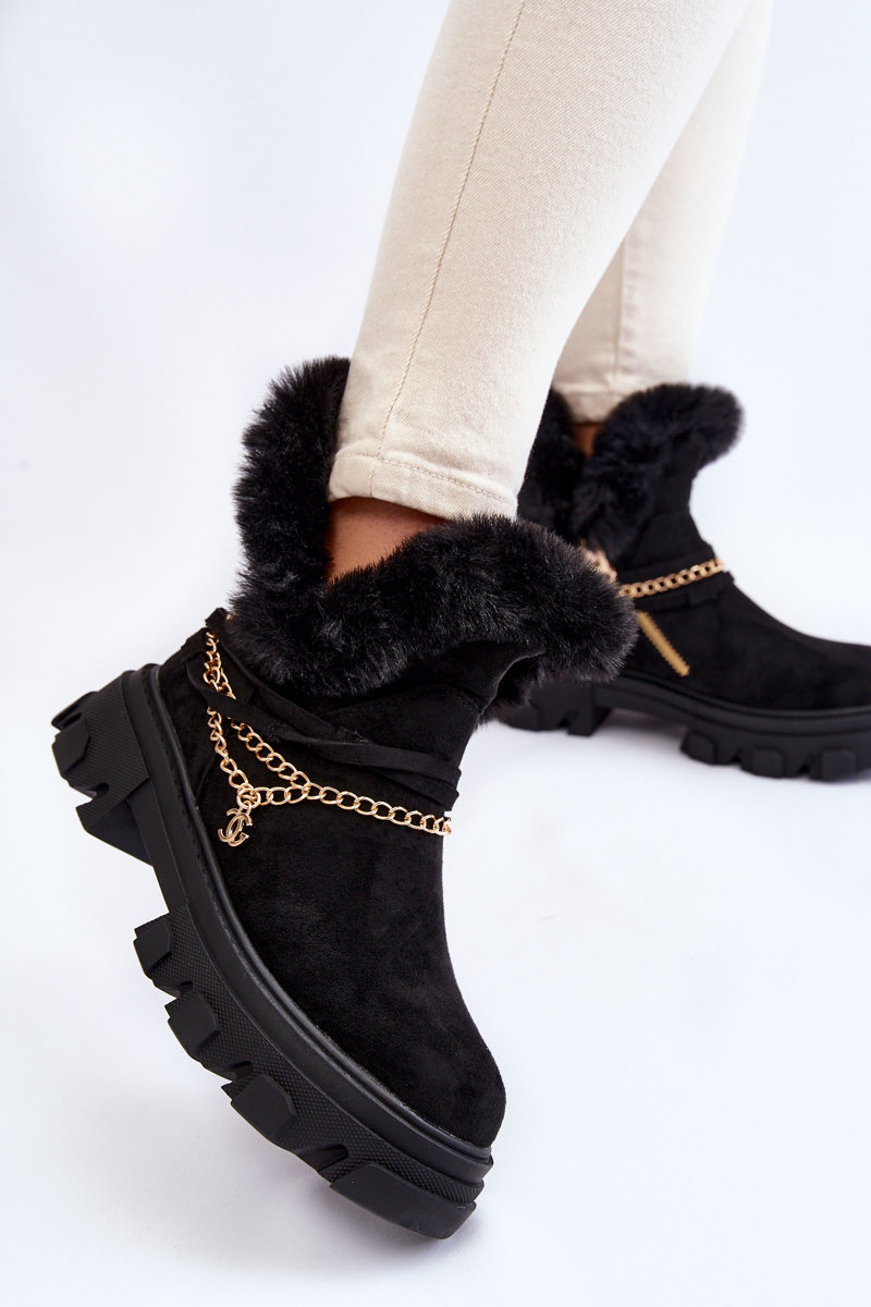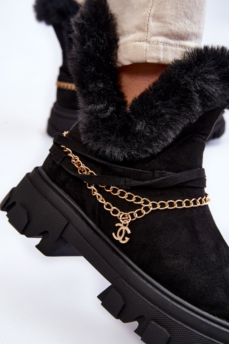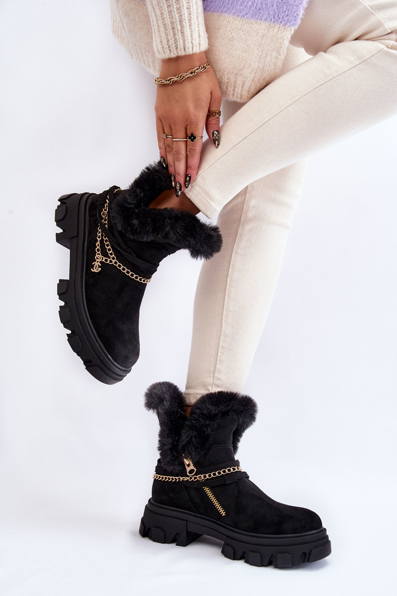 Замшеві жіночі чоботи з декоративним ланцюжком Чорні Respecto
