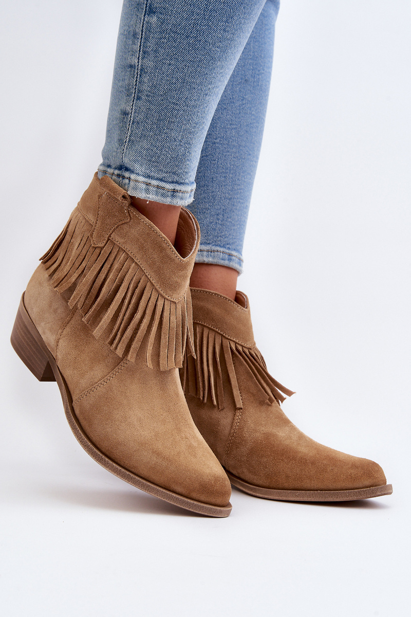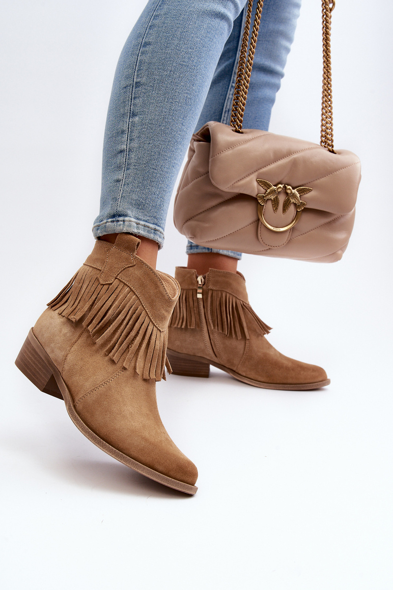 Замшеві жіночі чоботи Zazoo 3430 з бахромою бежеві