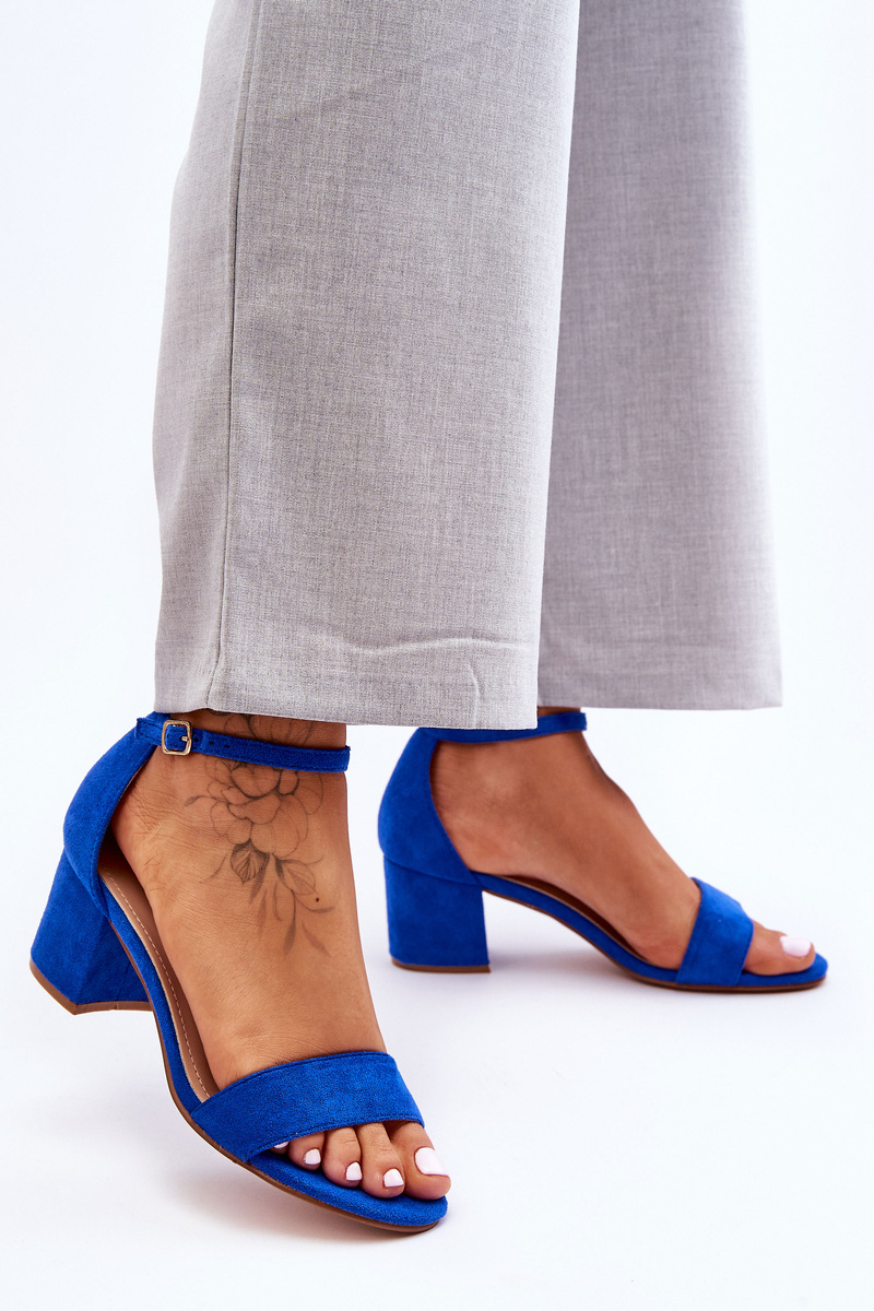 Класичні босоніжки на невисокому каблуці у вигляді стійкої стійки виготовлені з приємної на дотик еко замші. Ці босоніжки мають посилений каблук. Устілка виконана з екошкіри, що забезпечить комфорт при носінні взуття. Ніс відкритий, закруглений. Застібається навколо щиколотки за допомогою регульованого ремінця з пряжкою. Ви точно будете використовувати їх у багатьох ситуаціях! Обираючи розмір, орієнтуйтеся на таблицю розмірів.