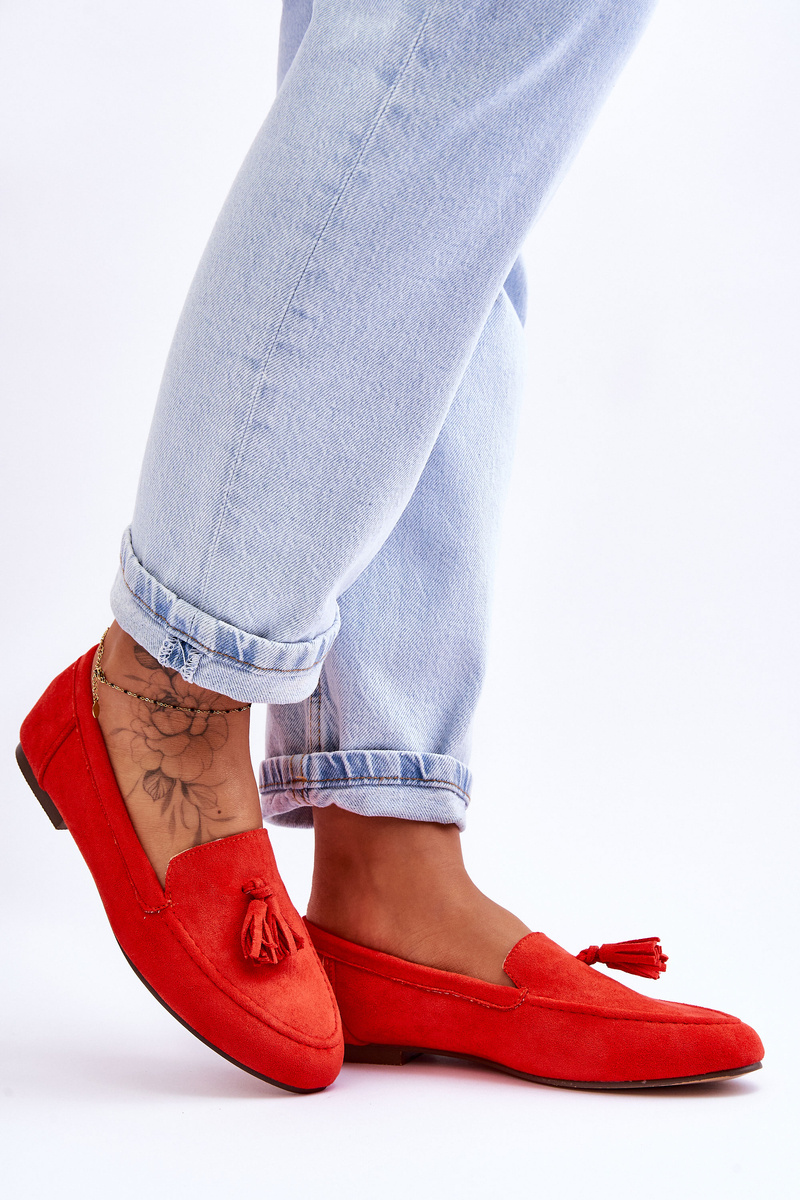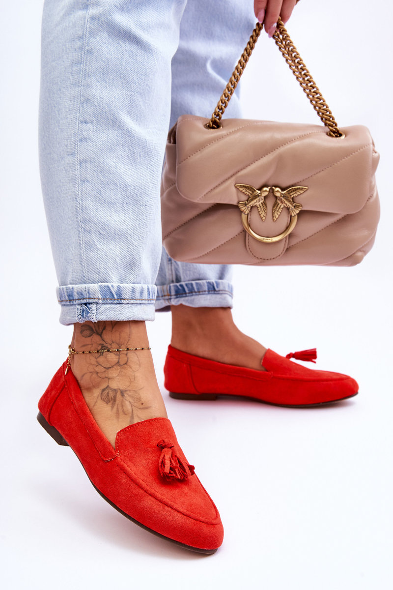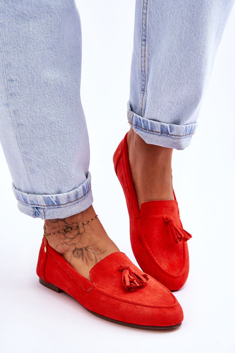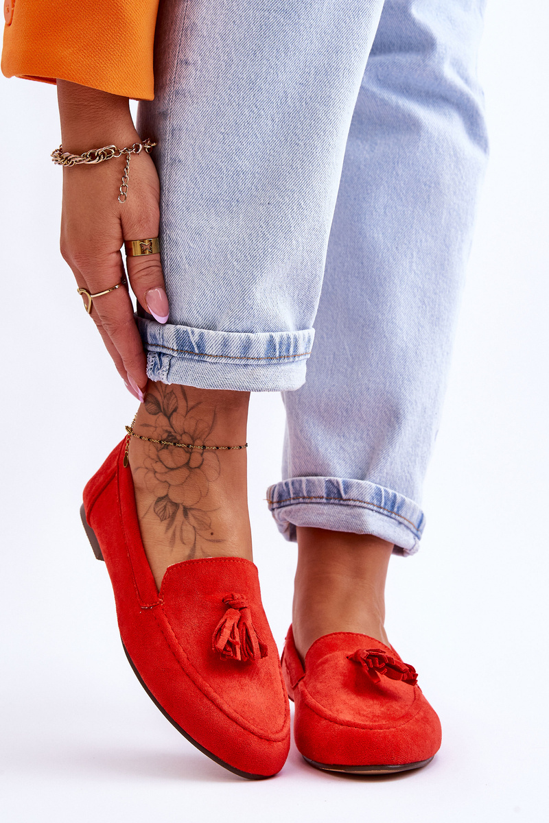 Замшеві класичні лофери з бахромою Темно-помаранчеві Averil
