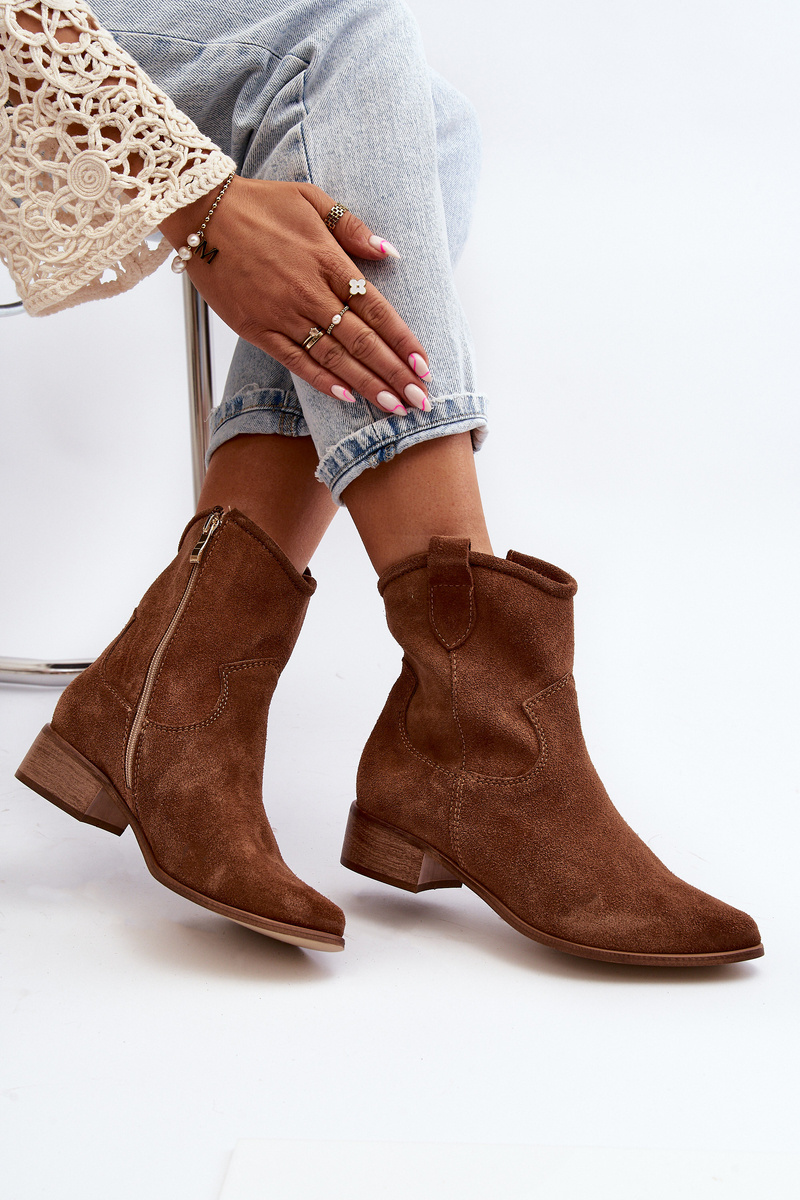 Замшеві ковбойські черевики на низькому каблуці Zazoo 3329 Коричневий
