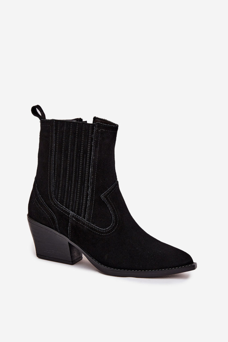 Замшеві ковбойські чоботи жіночі на каблуці утеплені чорні Dylira