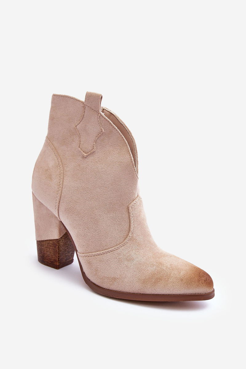 Замшеві ковбойські чоботи на підборах світло-бежевого кольору