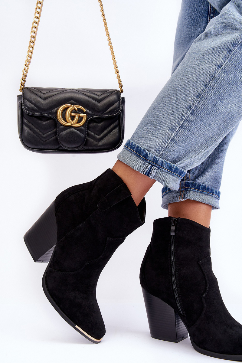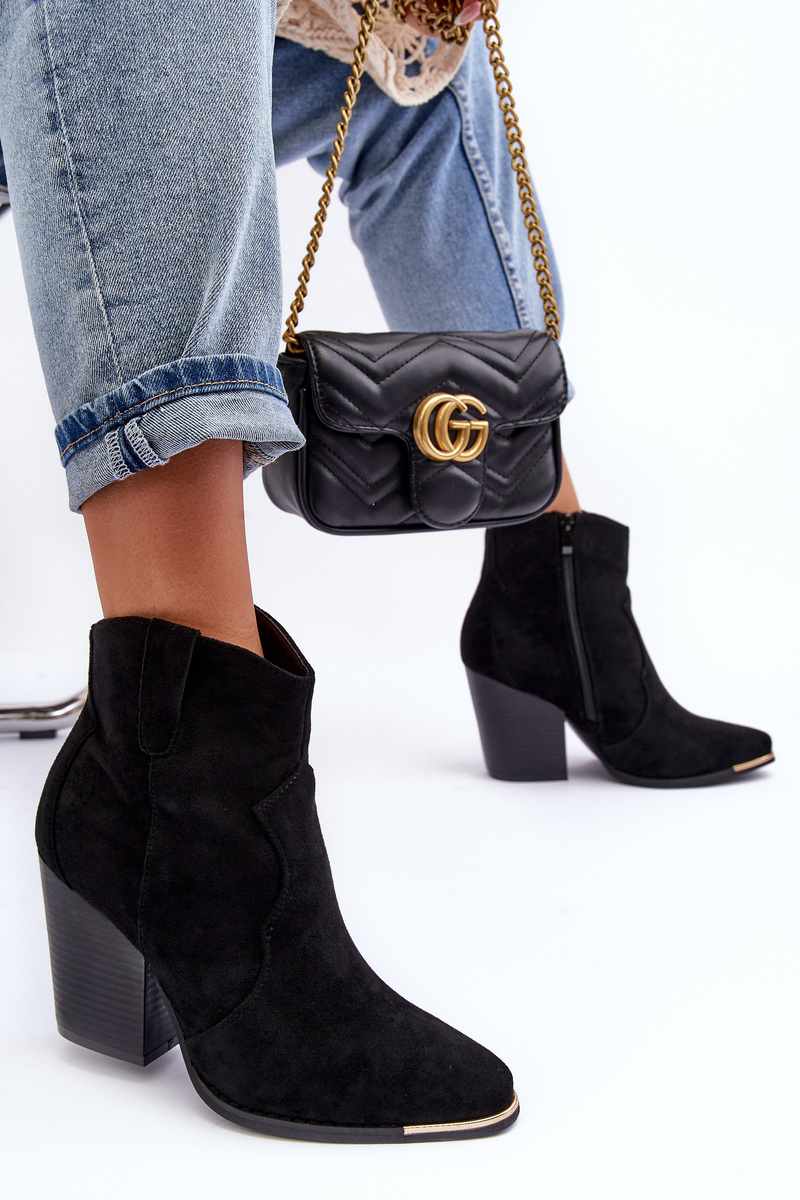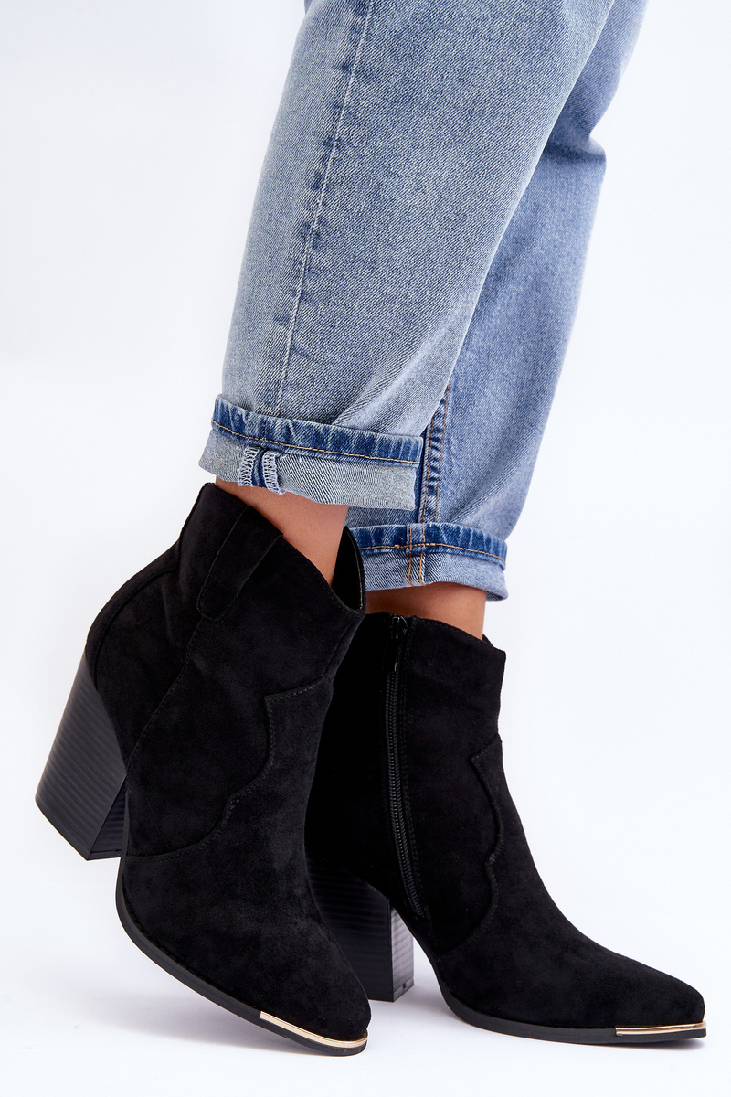 Замшеві ковбойські чоботи на підборах чорні Lotoune